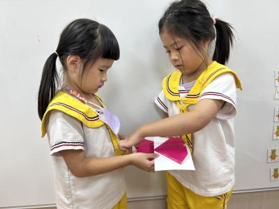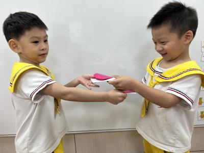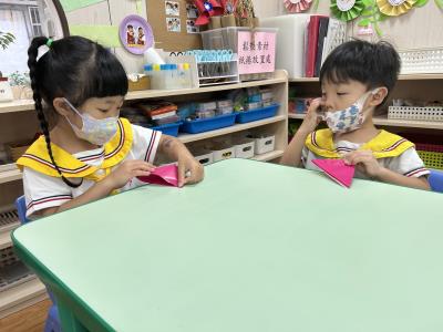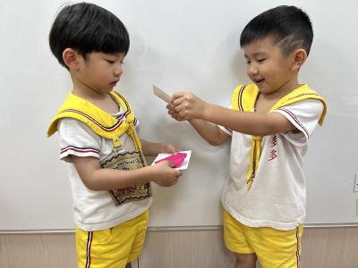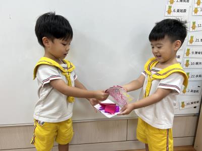 114.10.13 主題活動~送你一份禮 今天小朋友們動手摺出了可愛的色紙愛心,在卡片上畫下「想送給好朋友的禮物」有人畫了糖果、有人畫玩具,還有人畫出一起玩。 耍的畫面,每一張都充滿真心與創意。 最後孩子們把完成的卡片親手送給同學,開心地說出祝福的話。