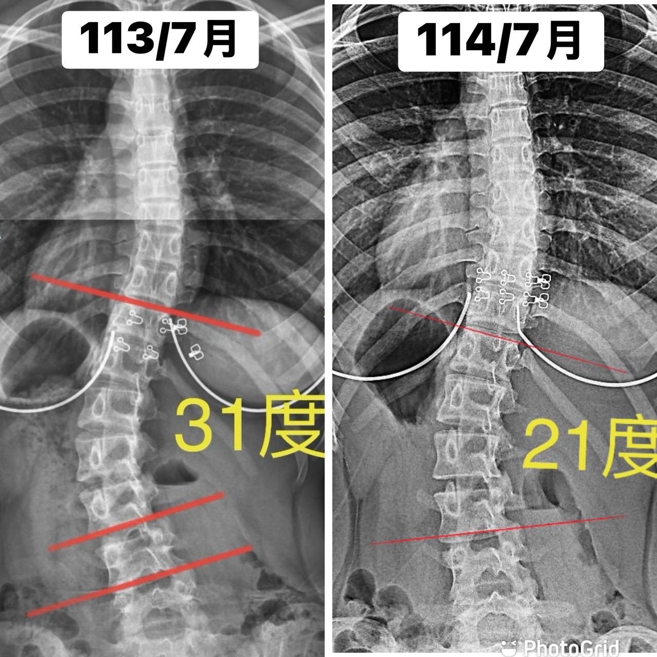 個案小楊(化名),是一位熱愛學習的國中生;課業繁忙的他依然堅持每天練習矯正運動,經過三個月的 #側彎矯正訓練,從23度減少到18度,體態更是明顯改善,雕塑出感人的左腰曲線
