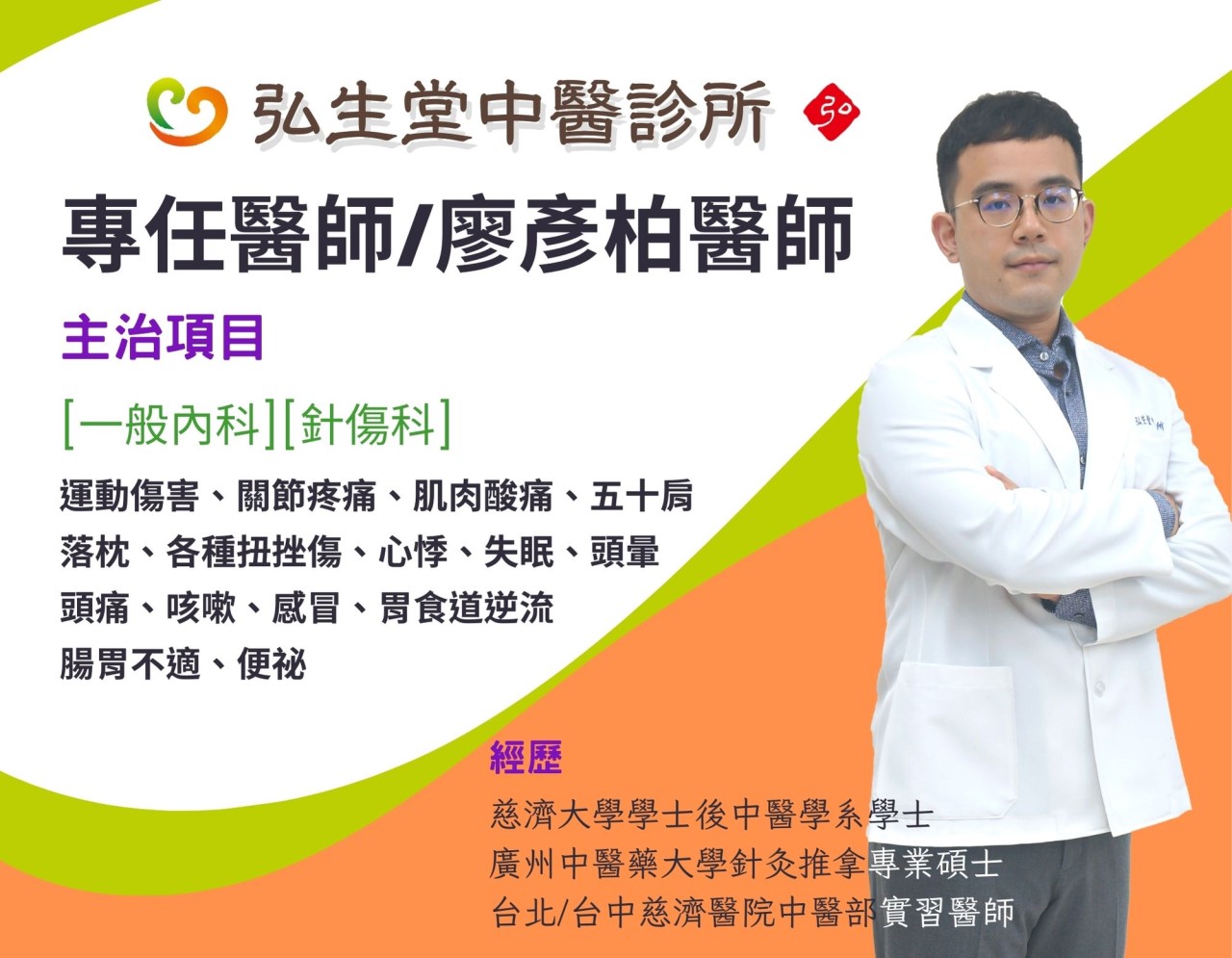 運動傷害、關節疼痛、肌肉痠痛、五十肩、落枕、各種扭挫傷、心悸、失眠、頭暈、頭痛、咳嗽、感冒、胃食道逆流、腸胃不適、便祕