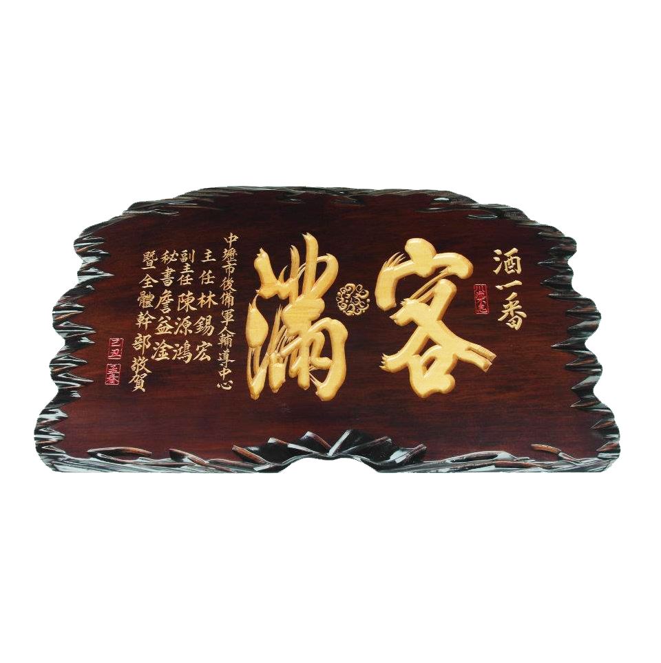 3尺奇木匾-客滿-染色底原木色字
