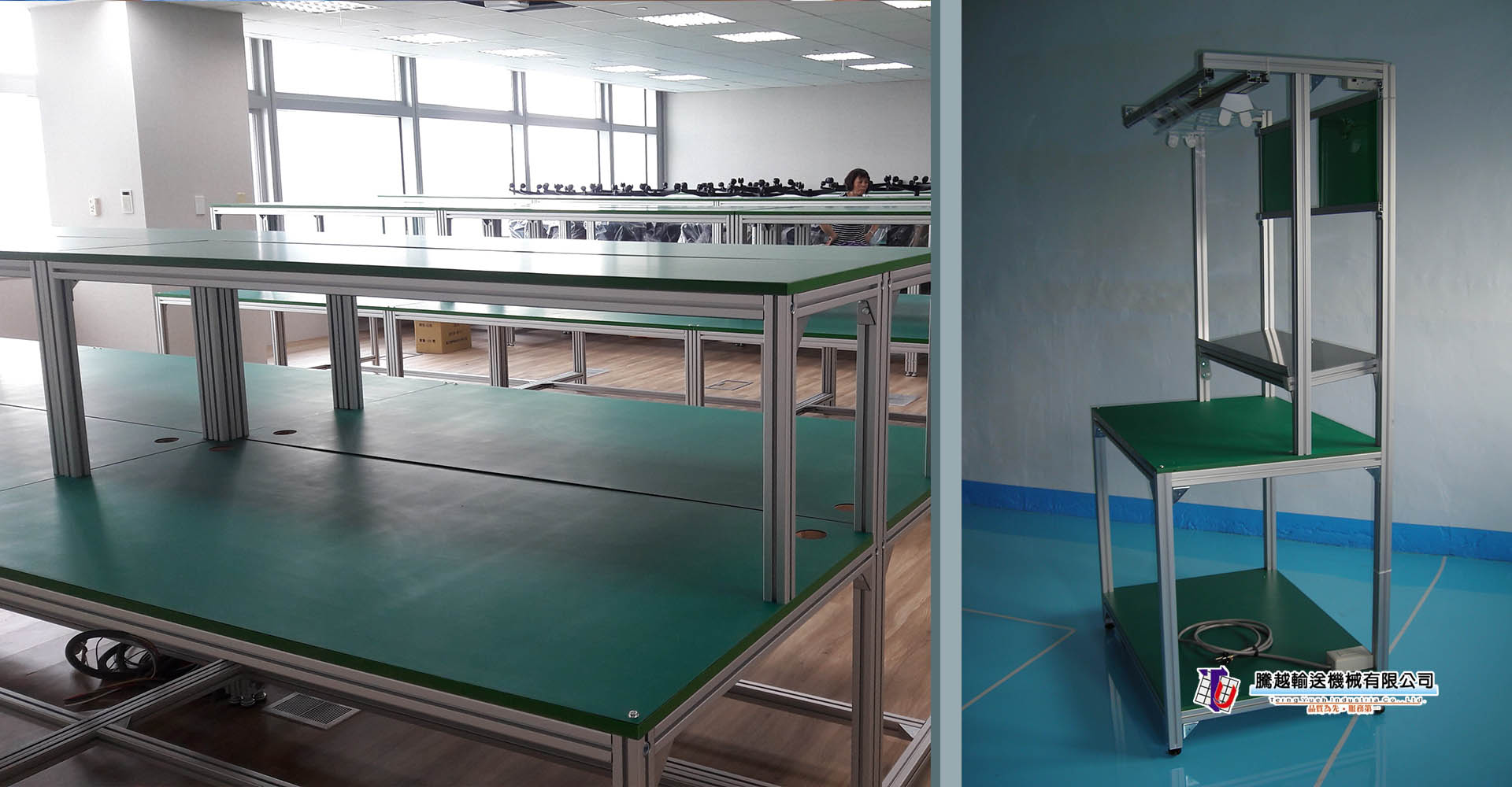 台灣新北專業的輸送機設備及器具製造,專注於輸送帶、皮帶輸送機、滾筒輸送機、輸送設備、工業工作桌、鋁擠型台車、置物台車、物料架…等的規劃、設計、製造、安裝、保養等服務。 依照客戶的需求,提供易懂的圖面參考、專業建議及實在的報價,不論是裝配線及物品的應用,或是倉儲輸送系統的配合,騰越配合工廠不同的生產作業,作彈性的修改,以維護客戶的成本效益。