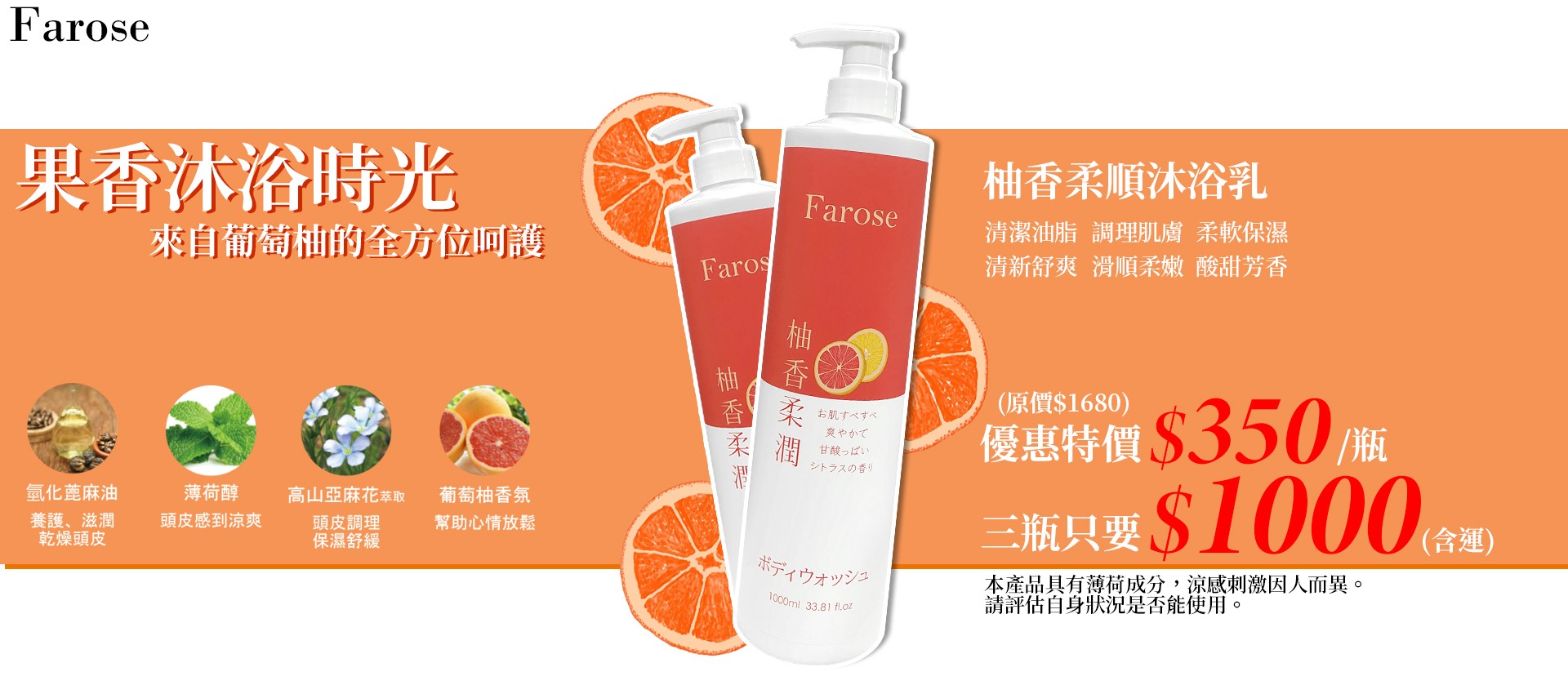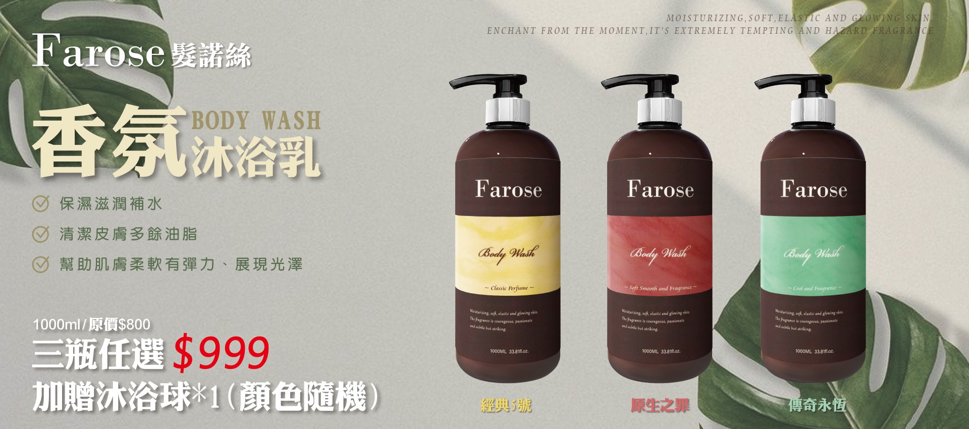 髮諾絲Farose 香氛沐浴系列三瓶活動組