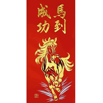 (金) 駿馬馳春財匯聚 17x112cm $800