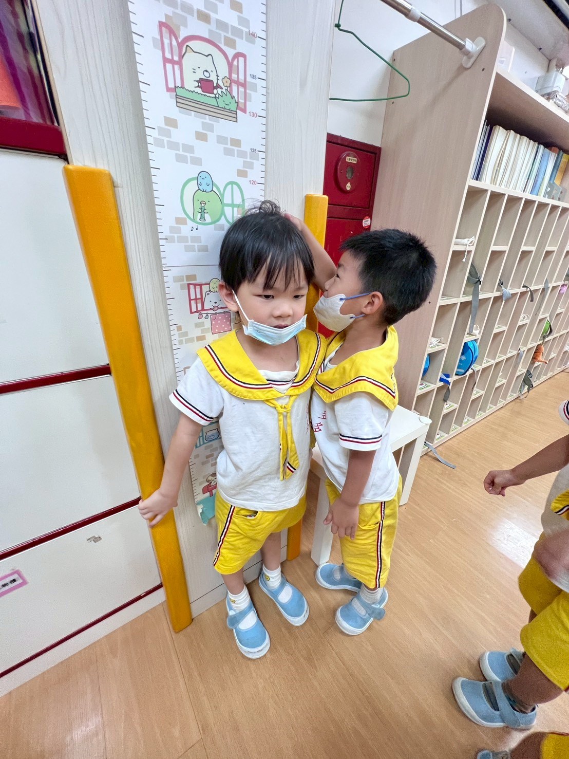114.10.14【比一比誰比較高】:本週孩子們和朋友一起比身高,互相幫忙測量、對比,氣氛熱鬧又有趣。活動中孩子不僅認識了「高與矮」的差異,也感受到合作與關心同伴的快樂。
