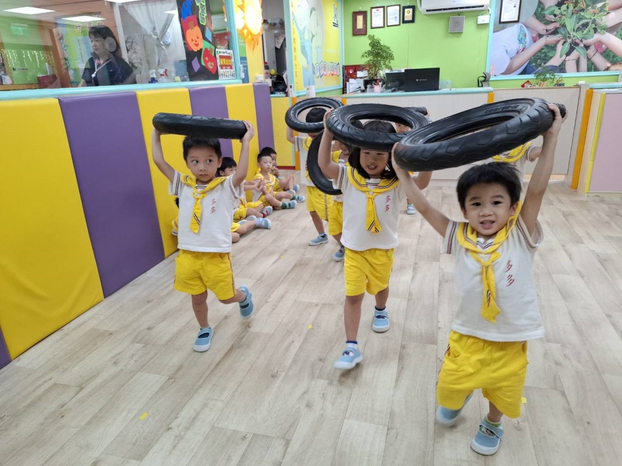 【114/10/16體能律動:誰是大力士?】走在輪胎上看似容易卻不簡單的動作,孩子們非常忙碌的動作要控制腳底還有身體平衡才能順利行走,訓練孩子手臂要有強大的力量才能滾輪胎、翻轉輪胎及搬運輪胎當送貨員,一起動起來加加油!
