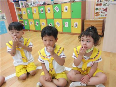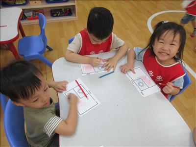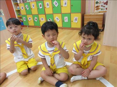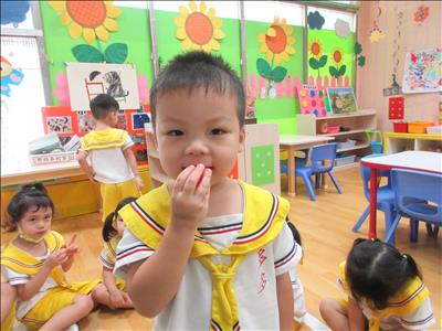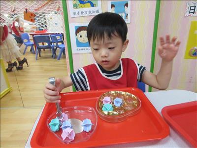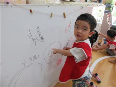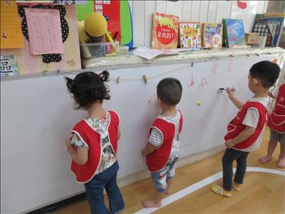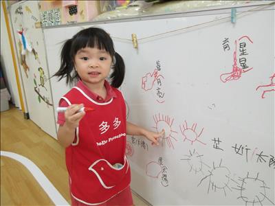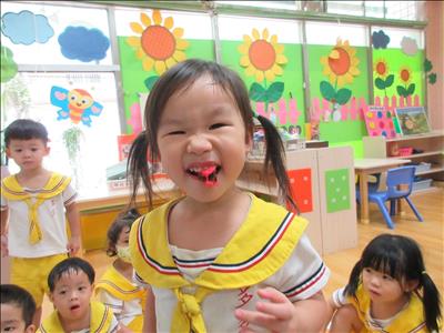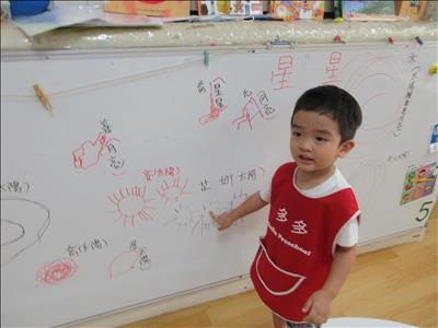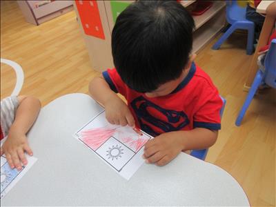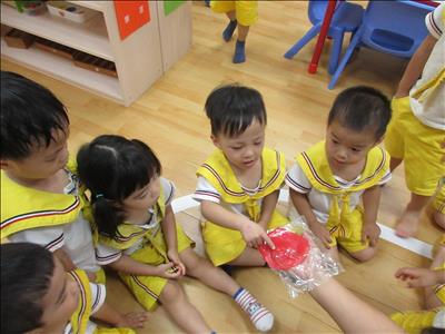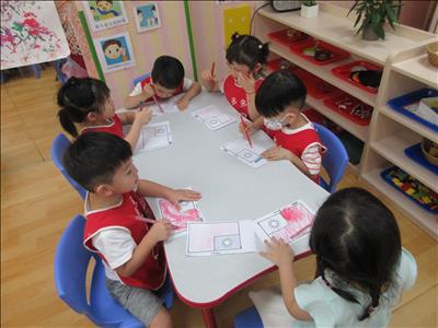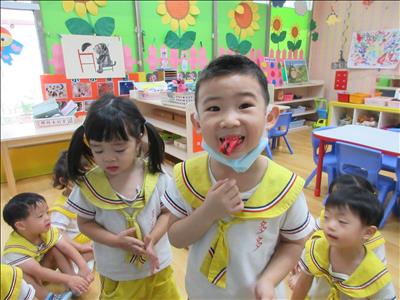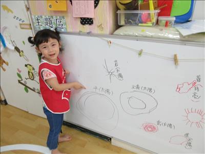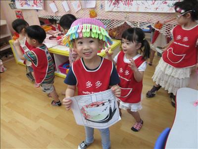 109.7.13主題活動:台灣好顏色~老師帶孩子們認識紅蛋、紅棗、紅龜粿、紅色湯圓是傳統習俗代表吉祥和介紹國旗顏色及製作和畫米羅的天空與分享。運用多元學習區讓孩子自由探索,提升各領域能力。