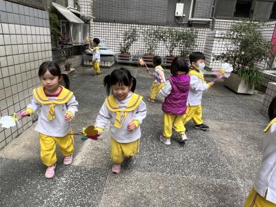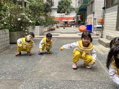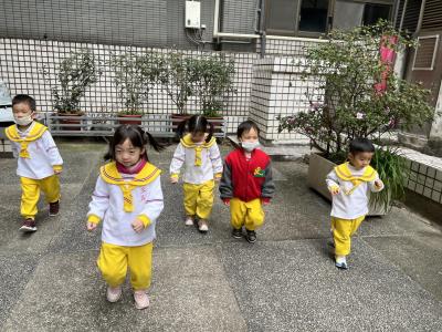 【113.2.26戶外出汗性大肌肉活動】 走!走!走到戶外花園看一看杜鵑花綻放好美,伸展肢體做暖身操,利用跑步、跳躍、學鴨子走路、玩彩色風車等,助於孩子增強下肢肌肉力量和平衡感及協調性,一同快樂運動!