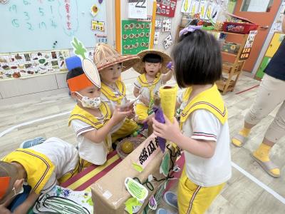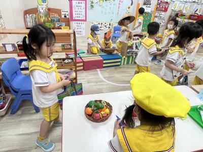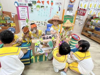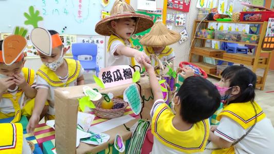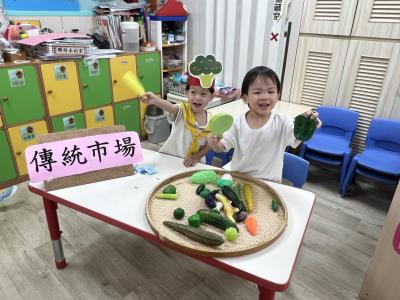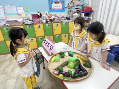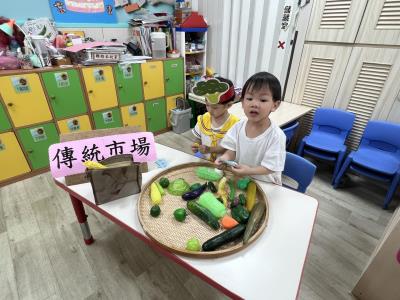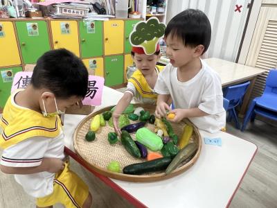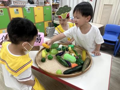 【113.4.22主題活動一我們是小小蔬菜王】 香蕉小兵們帶你一起探索有賣菜和買菜的地方,有賣什麼蔬菜?一起來小班看看囉! 分組進行好玩有趣的買賣遊戲,體驗開超市、傳統市和菜攤車買賣經驗,我們是賣菜小達人唷!