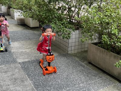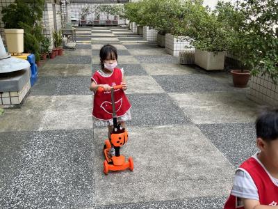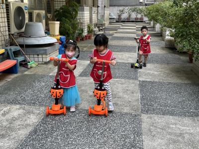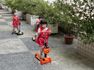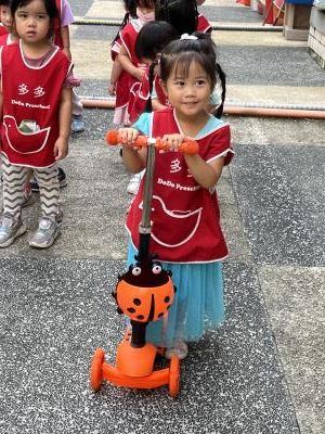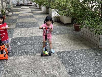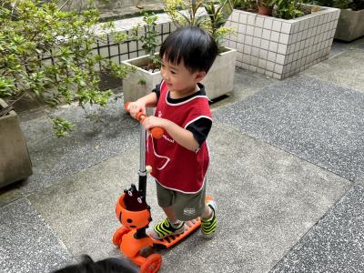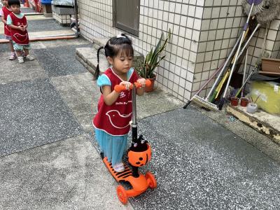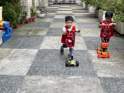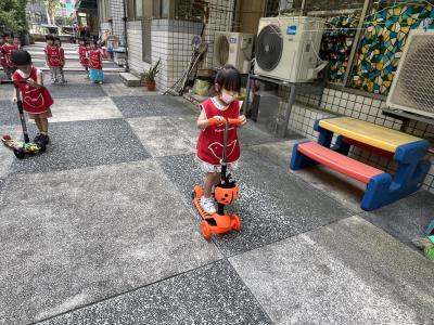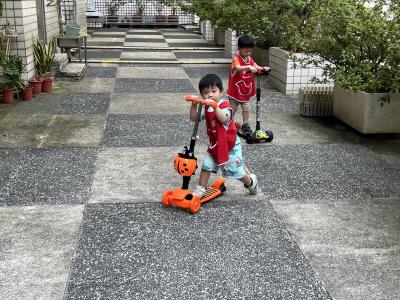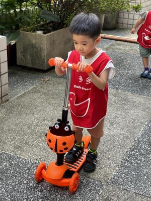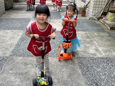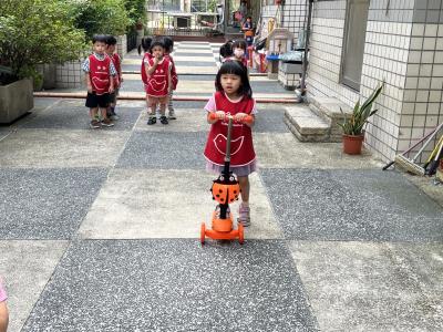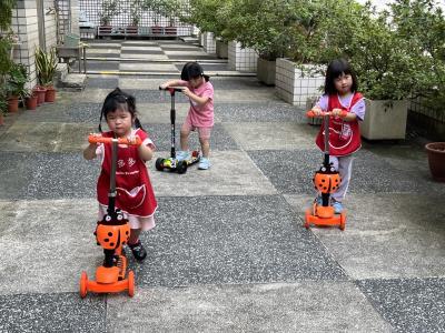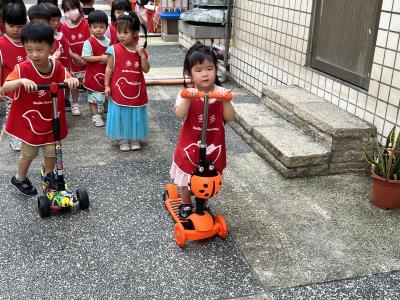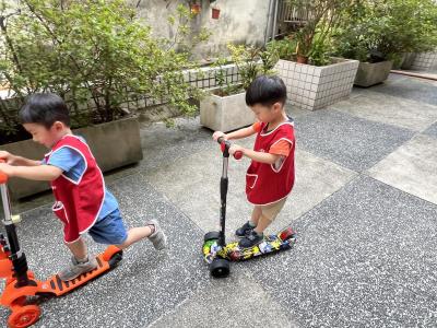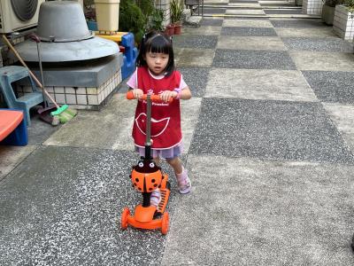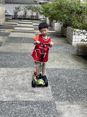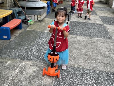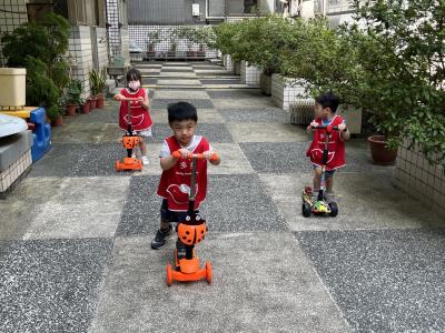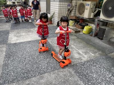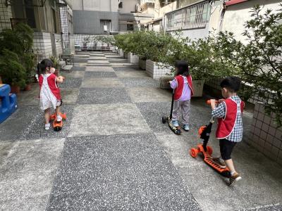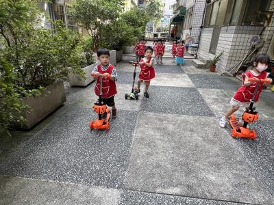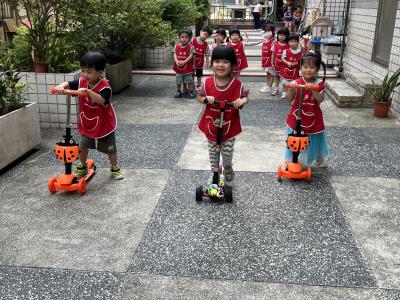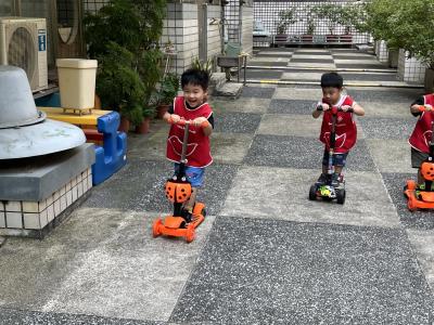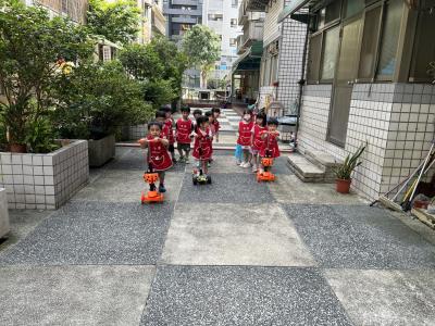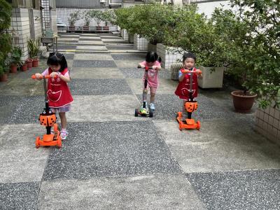 【114/09/09】★老師帶孩子們到戶外做暖身操活動及折返慢跑,慢跑過程能訓練孩子越來越靈活度和能控制安全距離,訓練全身平衡感及下肢肌耐力! ★謝謝梓閎媽咪借給滑板車,老師多提供讓孩子們戶外體驗騎滑板車,老師說明注意事項:1.要分組排隊輪流玩 2.不能騎太快要注意安全及避免碰撞。過程中有的孩子們感覺統合能力佳,騎起來全身協調性很靈活,滑步很順,有些孩子則手握龍頭會左右偏移和腳步跟不上來快跌倒…多提供練習機會待熟練後能夠滿足孩子平衡感和協調性,這可是很重要的全身發展里程碑喔!