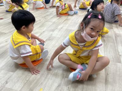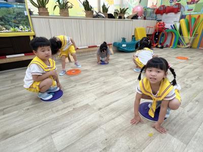 【114/09/11體能律動:天旋地轉】透過扭扭盤香蕉小兵要挑戰走在扭扭盤上邊走紐一扭身體和快速跑真刺激!舞動身體具韻律感我最會扭一扭~最後體驗坐旋轉咖啡杯超快,挑戰膽量我最行!