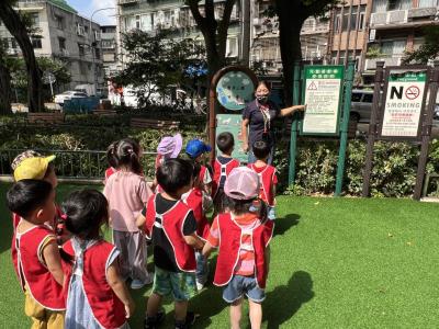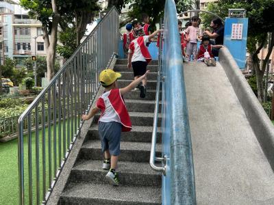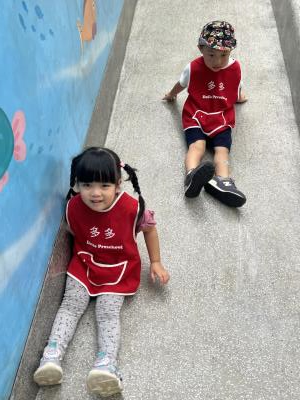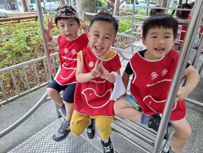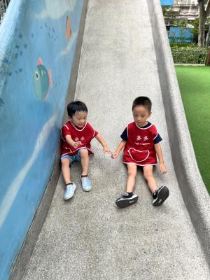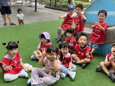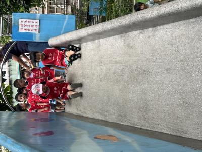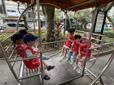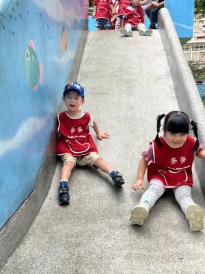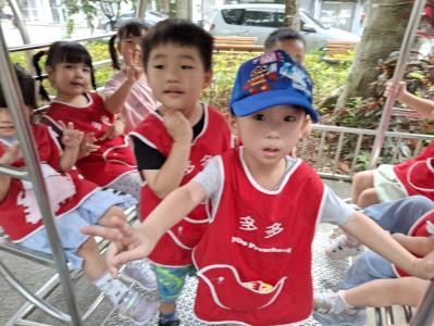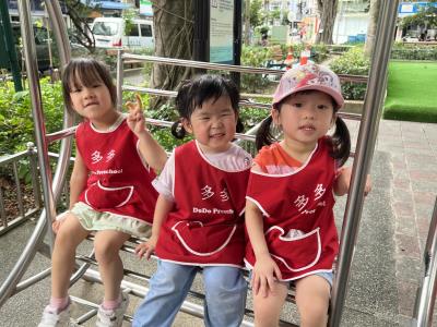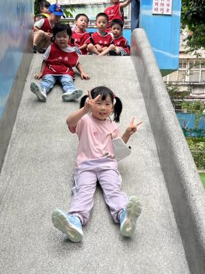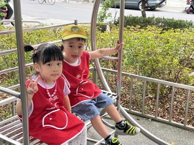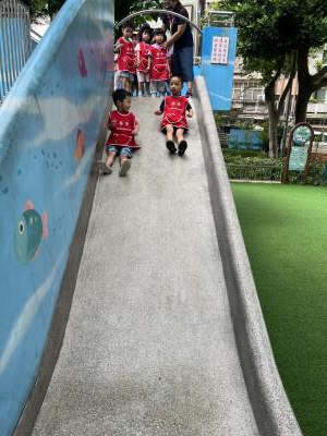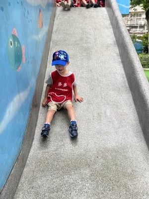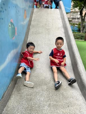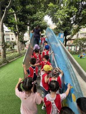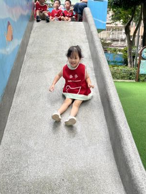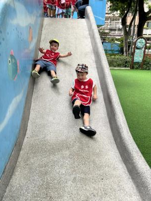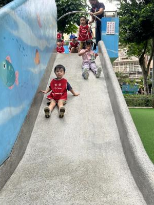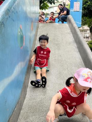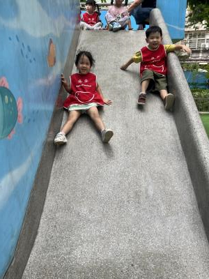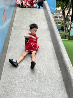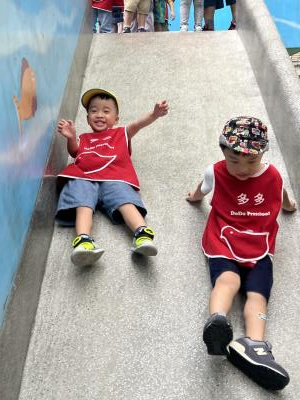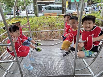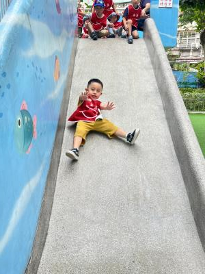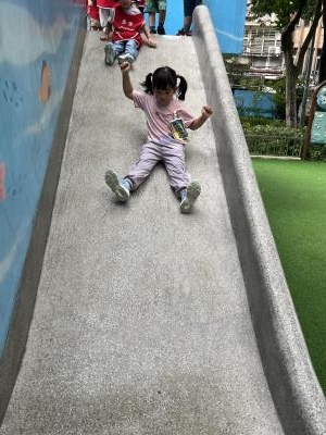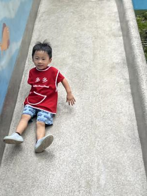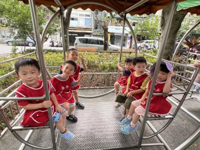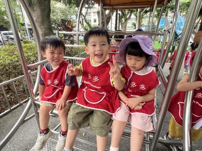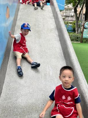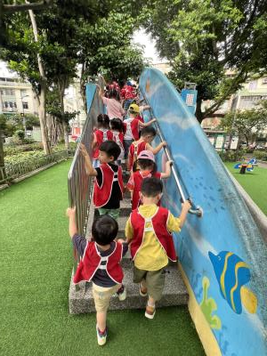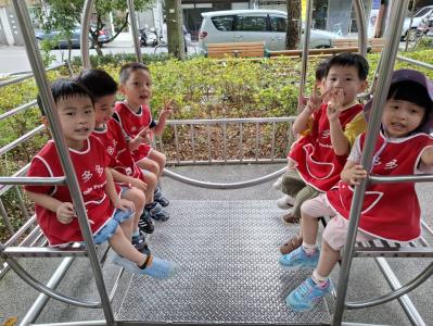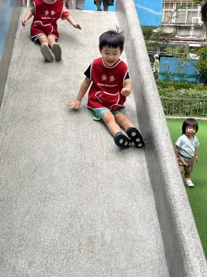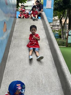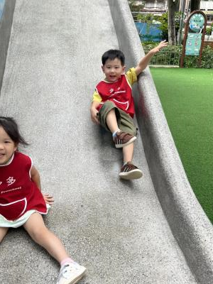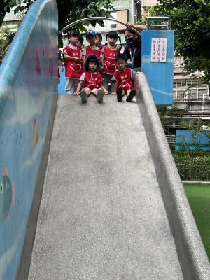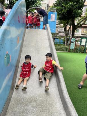 【114/09/12主題活動 (一)快樂來上學:注意遊樂設施的安全】大家一起討論遊樂器材的正確玩法,盧盧老師說:「小朋友都知道遊樂器材的玩法和注意自身安全」我們就能到走出戶外到公園探索微風徐徐吹來超涼快好舒服,孩子們都能遵守規矩排隊爬樓梯和坐下輪流玩溜滑梯和坐搖搖椅,咻-咻-大家一起排隊玩磨石子的溜滑梯超刺激溜很快真好玩!孩子都不想回學校了哈哈~幫助孩子身體平衡感和感覺統合訓練更有注意囉!