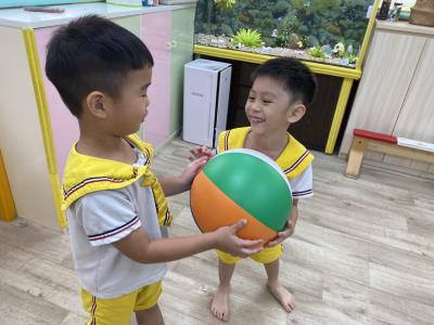 114.09.18體能活動~排球少年(海灘球) 今天的體能活動,孩子們和海灘球一起玩! 在遊戲中練習協調動作,嘗試正確地投擲與拍打,讓球在空中飛來飛去。 大家都笑得好開心,不知不覺就把手眼協調和身體控制力練得更棒啦~