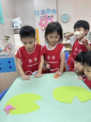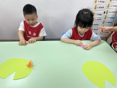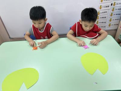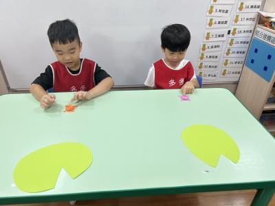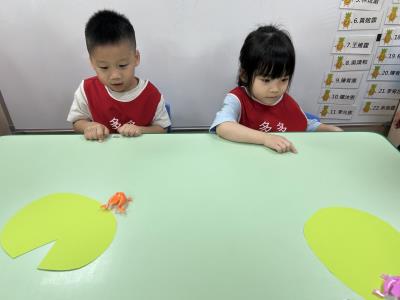 114.09.16主題活動~跳跳娃遊戲&合作搬書 今天小朋友們一起挑戰「跳跳蛙玩具」!大家比賽誰能讓小青蛙順利跳到荷葉上,也比賽誰的青蛙跳得更遠,現場歡笑聲不斷~ 除了比賽,小朋友們還一起合作搬書,互相幫忙、齊心完成任務,展現了和好朋友一起玩的快樂與默契!