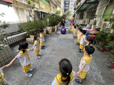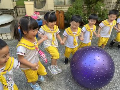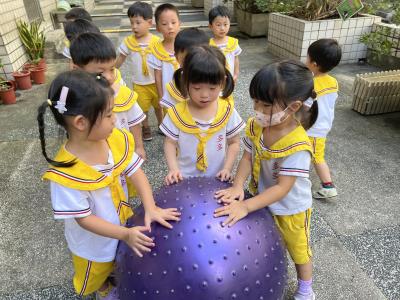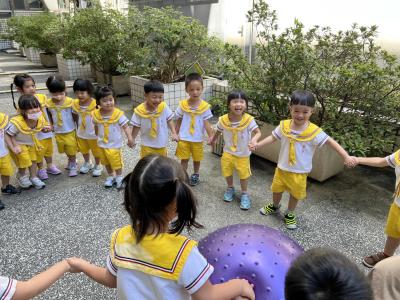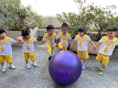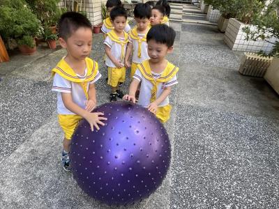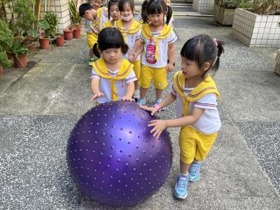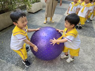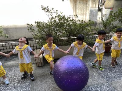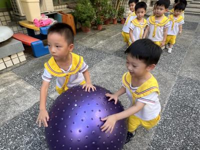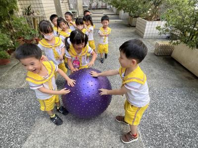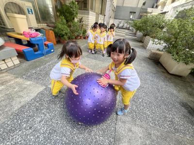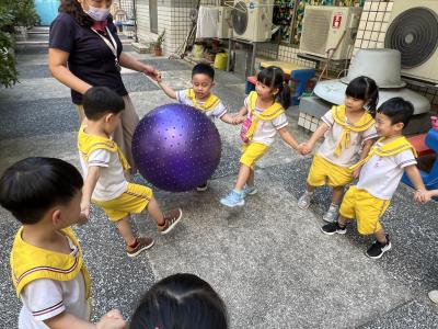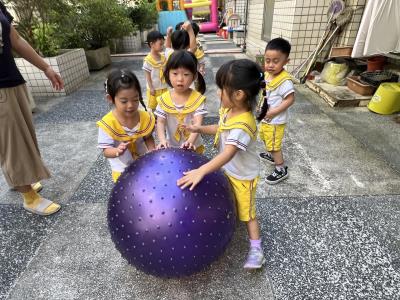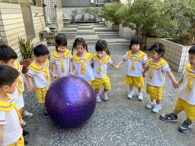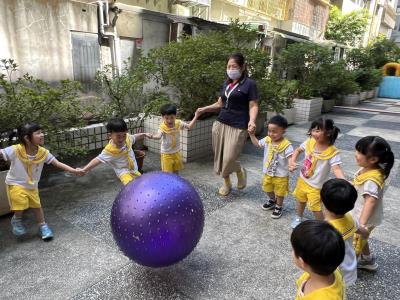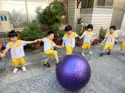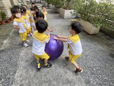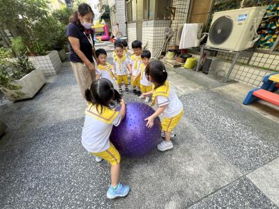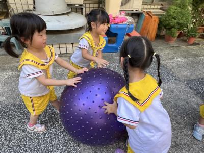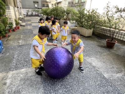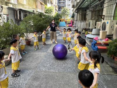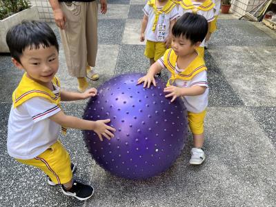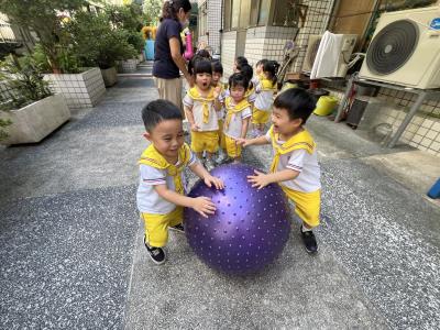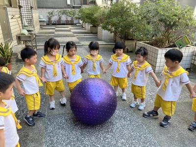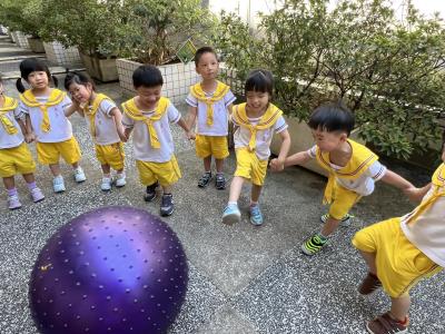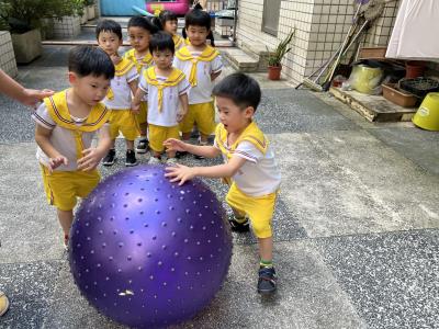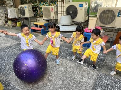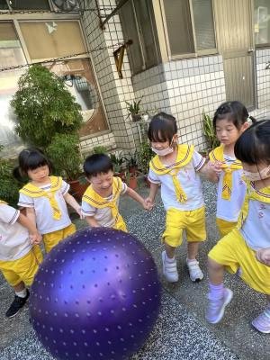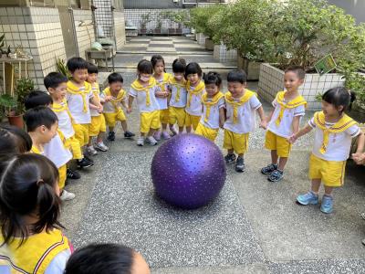 【114/09/15每日實施戶外大肌肉活動~~一起來玩大籠球吧】每天都好期待老師帶我們到花園跳律動和跑步及好朋友手牽手圍一個超級無敵大的圓圈,大家一起動動腳踢大龍球,孩子的笑容像花朵般燦爛、2人或3人搬運大龍球接力賽,大大的太陽跟著我們一起玩大龍球,陽光般心情動起來!運動後我會擦擦汗、洗洗手和喝喝水好健康!