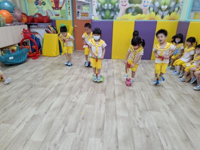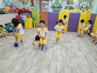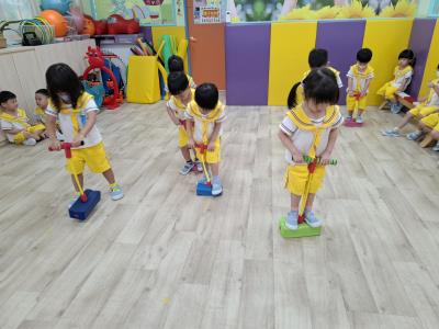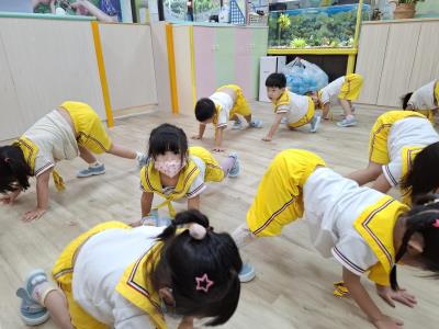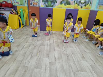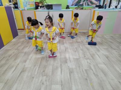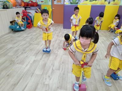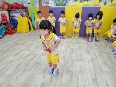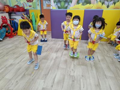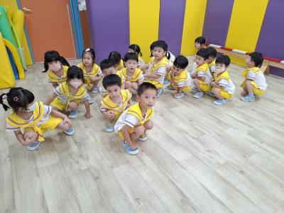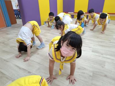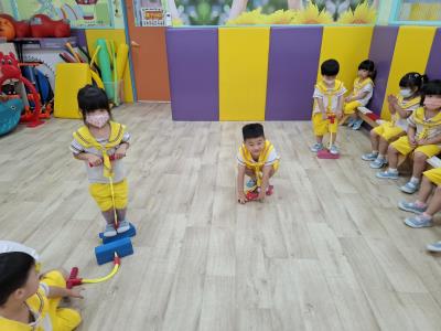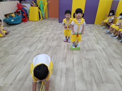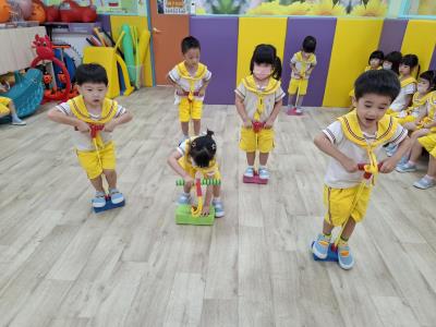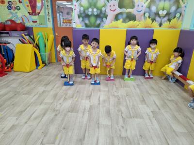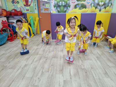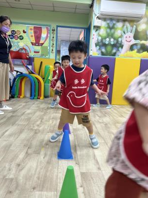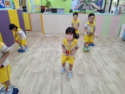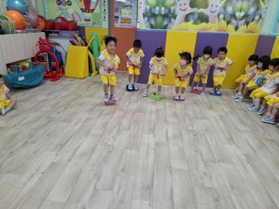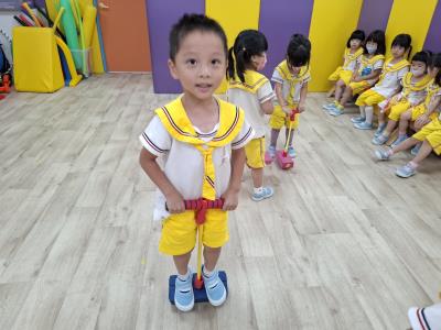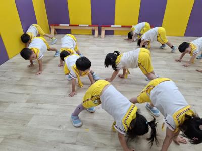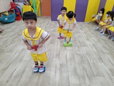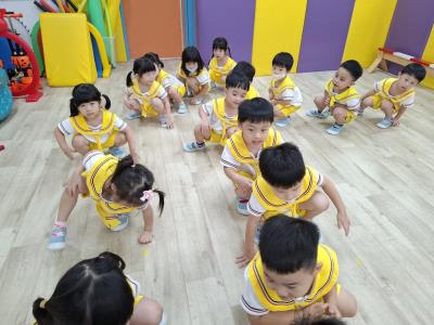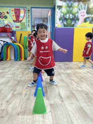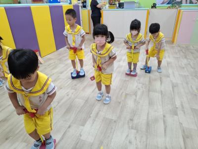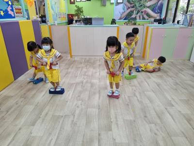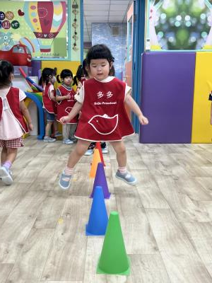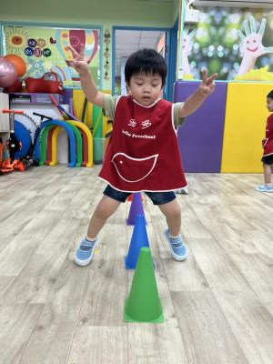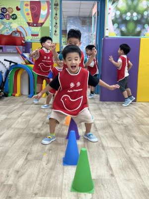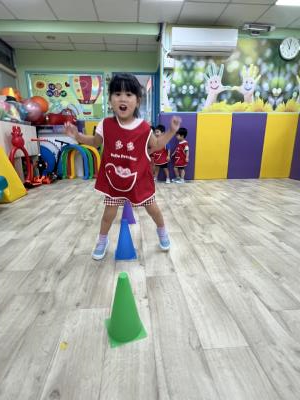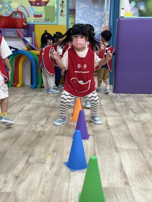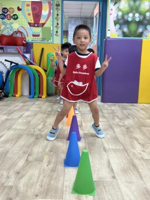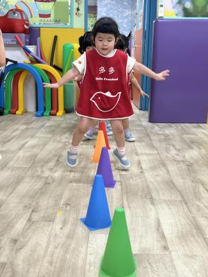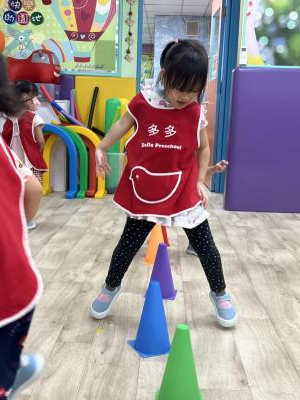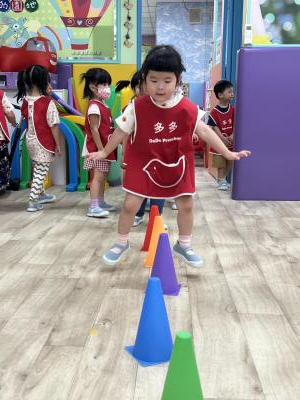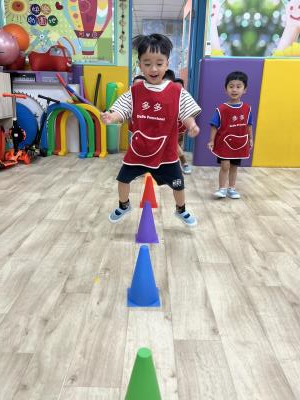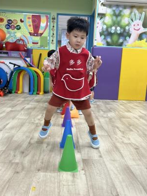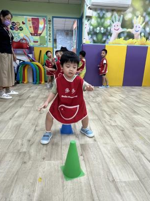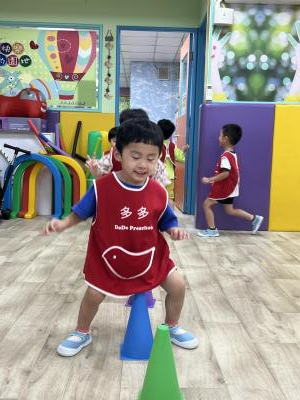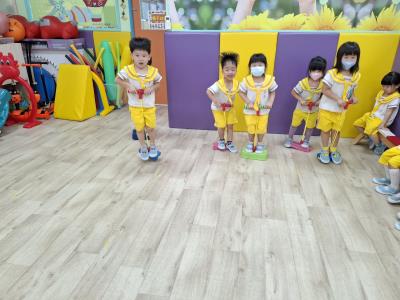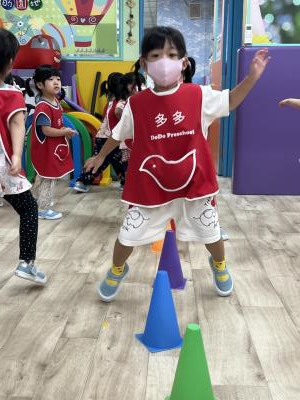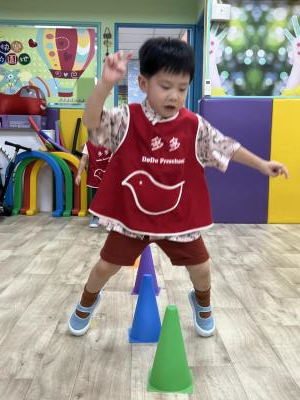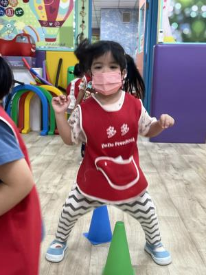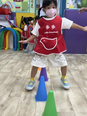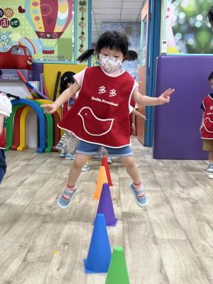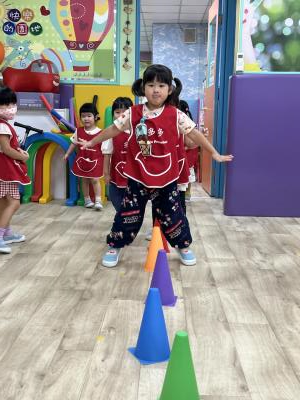 【114.9.26 30每日實施出汗性大肌肉運動:青蛙彈跳器材&彩色三角錐 】 孩子動一動身體做暖身操和跳律動,接著挑戰雙腳要連續跨越穿過交通錐要控制身體保持平衡和訓練腿部穩定度及培養專注力,青蛙彈跳器材能訓練孩子們全身敏捷性和穩定度及下肢肌耐力,越跳越厲害唷!挑戰困難我不怕!