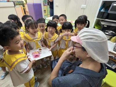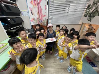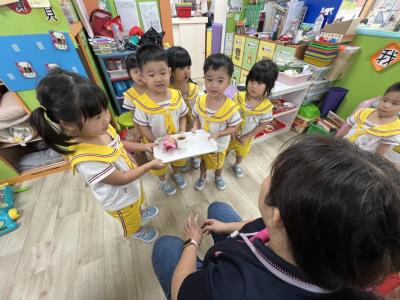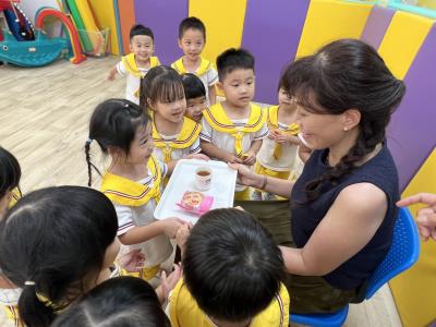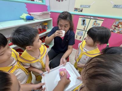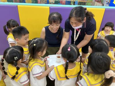 【114/09/26慶祝教師節感恩茶會活動—我會奉茶】老師透過繪本『老師我愛您』引導讓孩子們知道9/28是教師節,向園長、安可及曾教過的老師們表達節日對老師們的尊敬與祝福~小手奉上一杯茶說:老師請喝紅茶+蛋塔