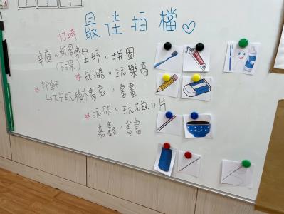 114.9.16【你是我的好朋友】:老師請孩子們分享自己最好的朋友是誰,接著談談和好朋友平常一起玩什麼遊戲。孩子們也想起和好朋友一起完成過的合作小任務,像是一起收玩具、一起搭積木。老師再舉例生活中的合作,例如牙刷和牙膏要一起才能刷乾淨牙齒,剪刀和紙要一起才能完成作品。孩子們從討論中明白,合作能讓事情做得更快、更好。