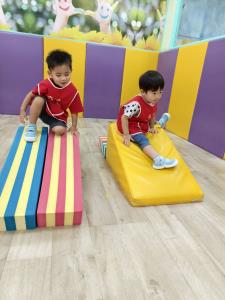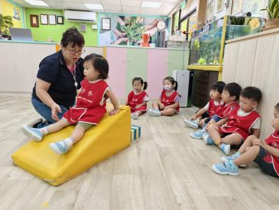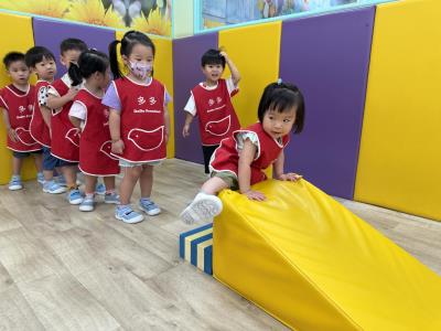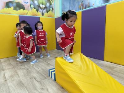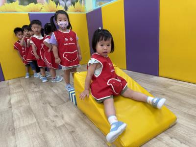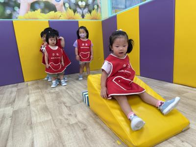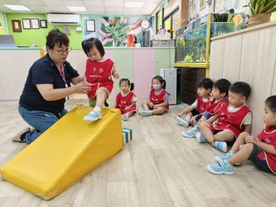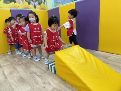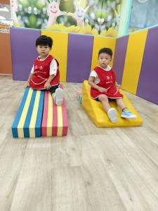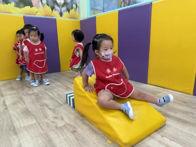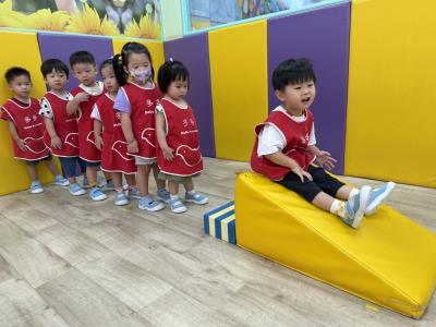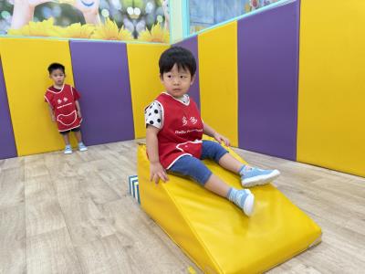 114.09.30主題活動~溜滑梯(我們利用霸王積木當樓梯和溜滑梯~大家溜得很開心,最後完成美勞~溜滑梯)