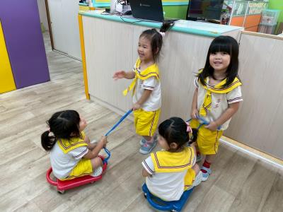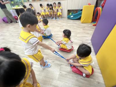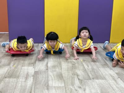 【114/10/13 30分鐘出汗性大肌肉-彩色板車】透過板車孩子們趴在板車上滑行練習能訓練前庭平衡及四肢協調性和拉板車考驗2人默契,運動我最健康!