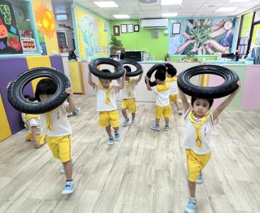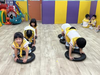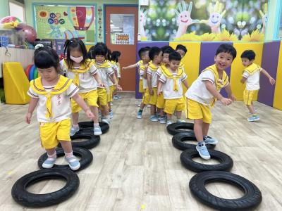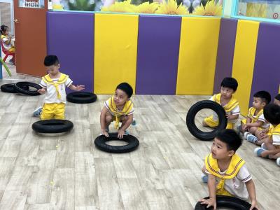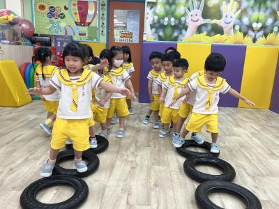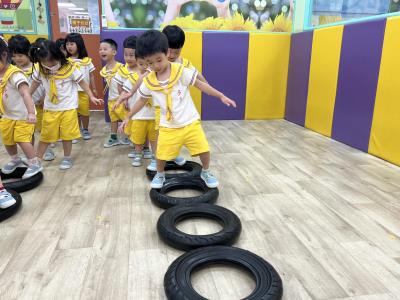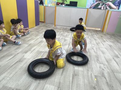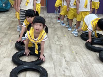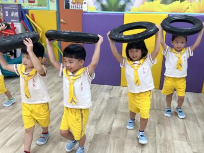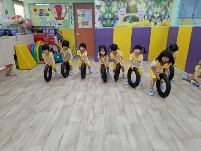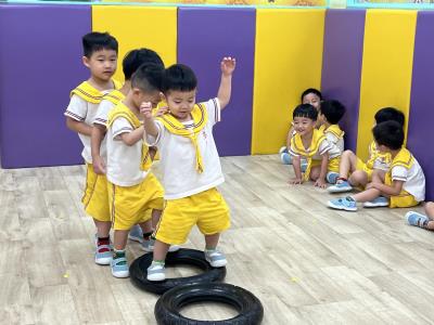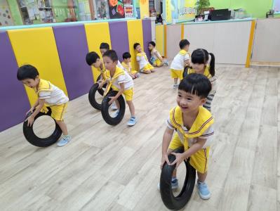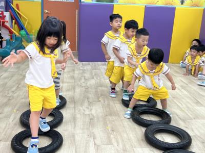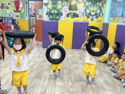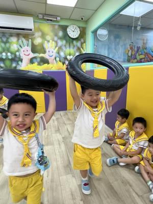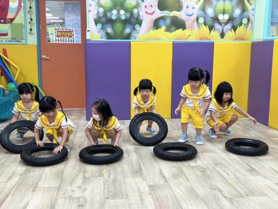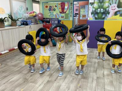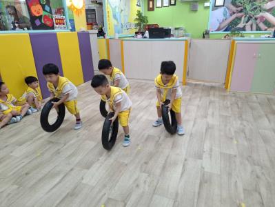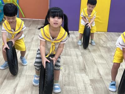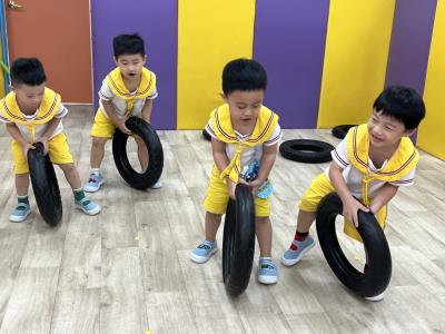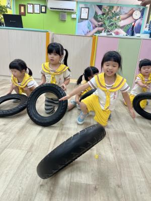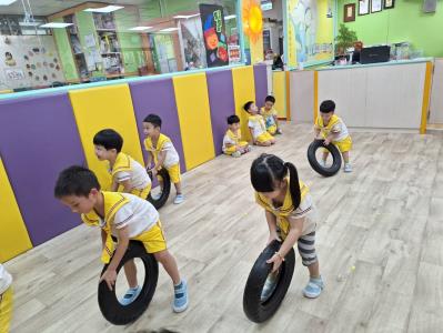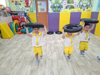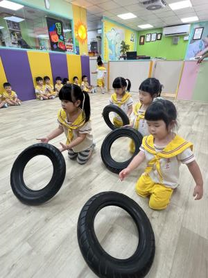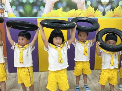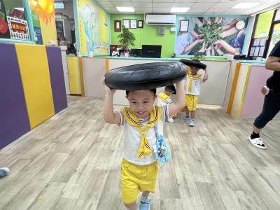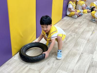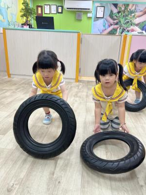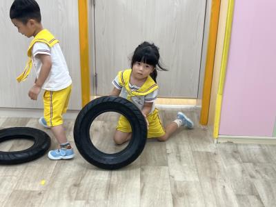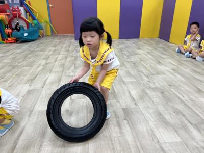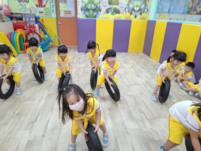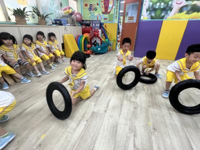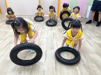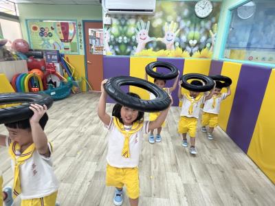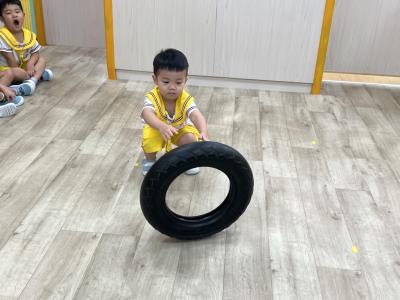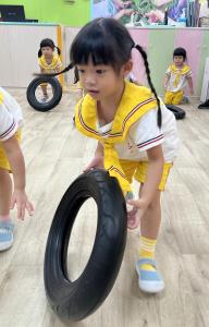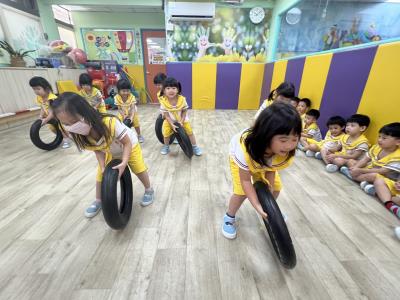 【114/10/16體能律動:誰是大力士?】走在輪胎上看似容易卻不簡單的動作,孩子們非常忙碌的動作要控制腳底還有身體平衡才能順利行走,訓練孩子手臂要有強大的力量才能滾輪胎、翻轉輪胎及搬運輪胎當送貨員,一起動起來加加油!