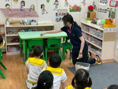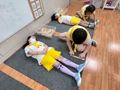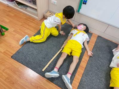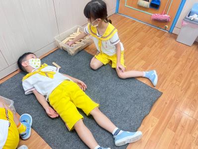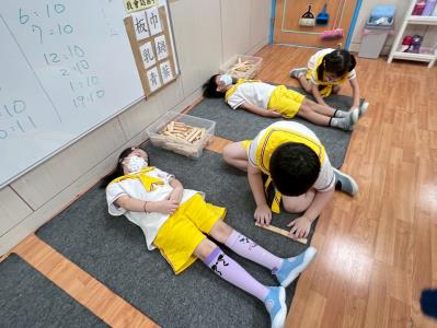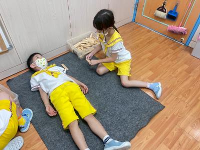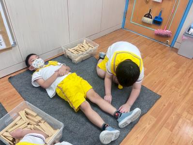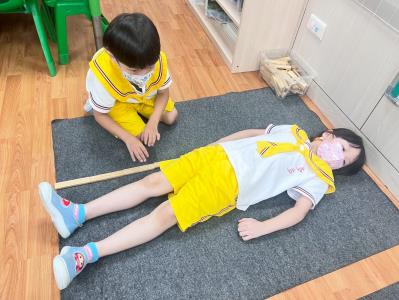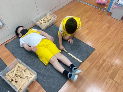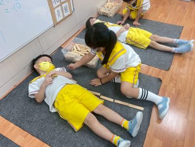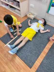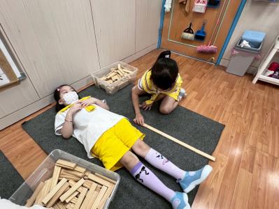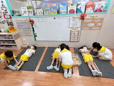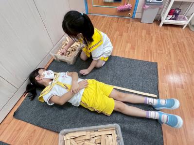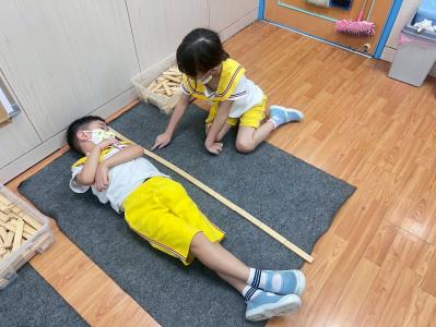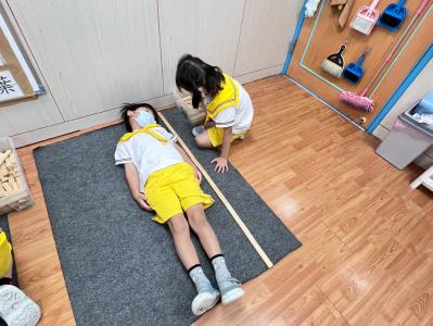 114.10.20【我用積木來量高】:活動中孩子們用積木來量身高,透過一塊塊排列,發現自己的身高有好多積木高呢!在操作中學會了估測與比較,也培養了觀察與動手能力。