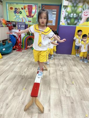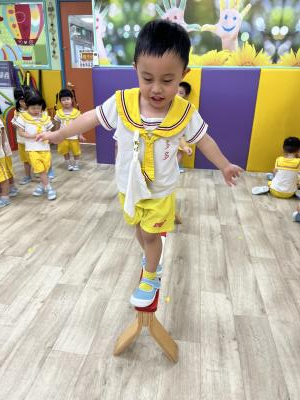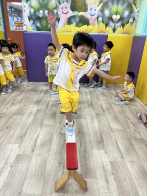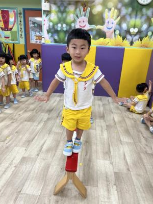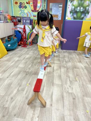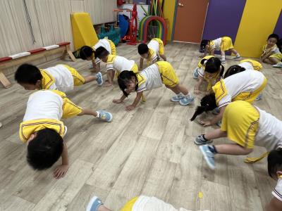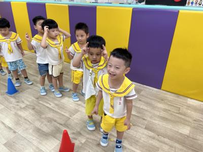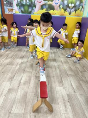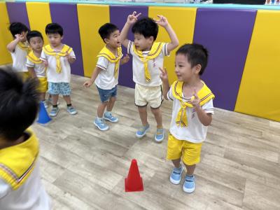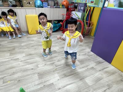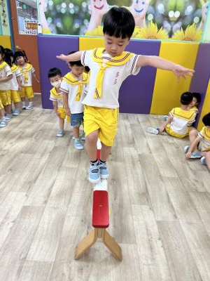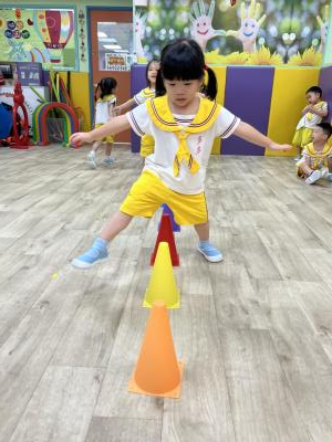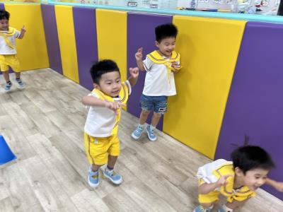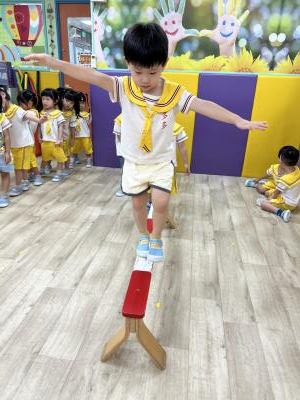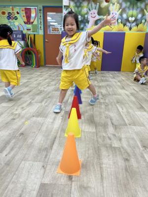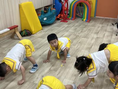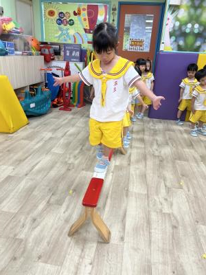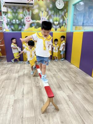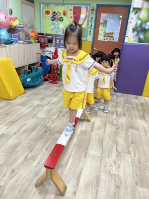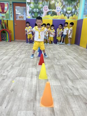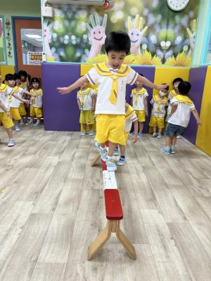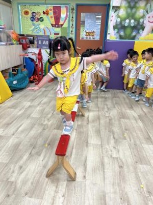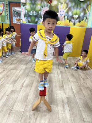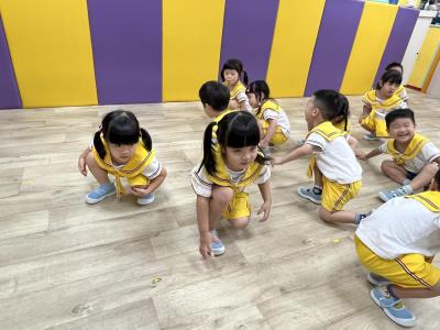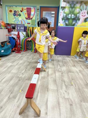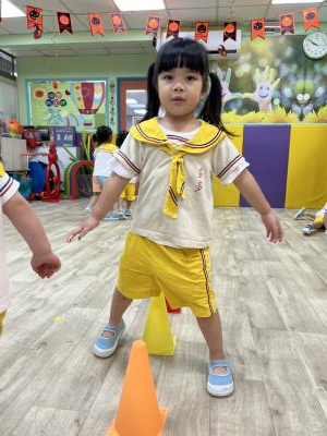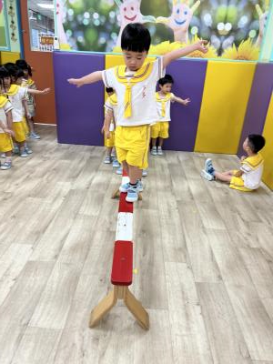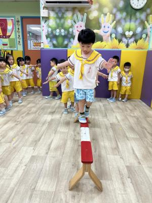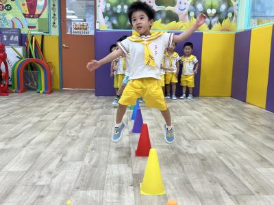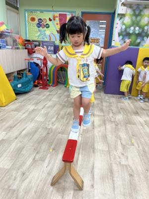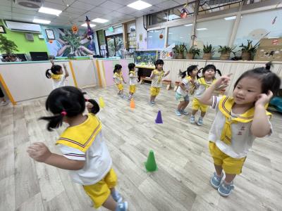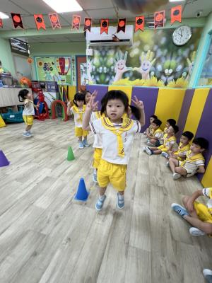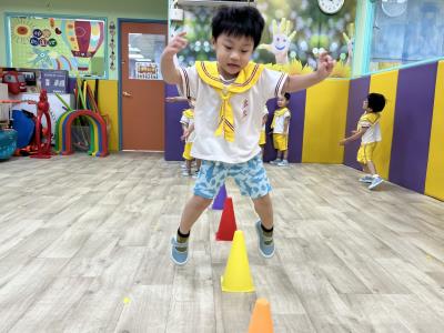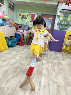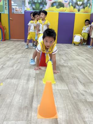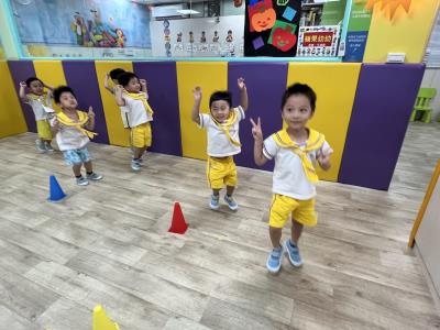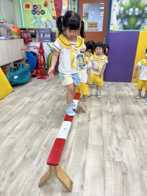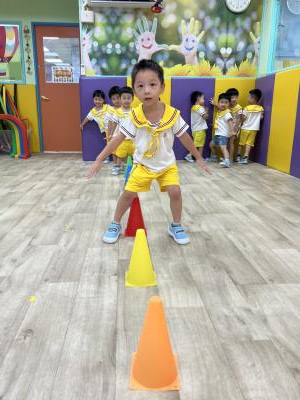 【114/10/20每日實施30分鐘出汗性大肌肉活動:彩色三角錐&平衡木】香蕉小兵像小兔子一樣跳過彩色三角錐再用四肢爬行穿越及環狀運動繞著三角錐跑大肌肉運動,走平衡木從開始害怕到現在不用扶能穩定自己走還不會掉下來,香蕉小兵有進步囉!運動我最棒!