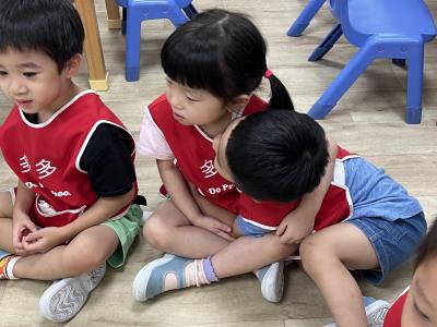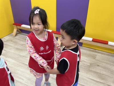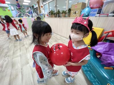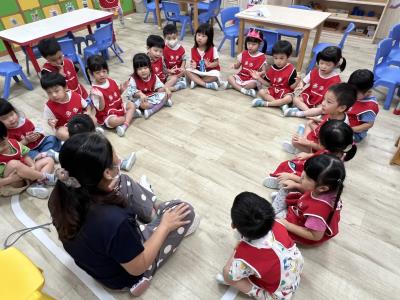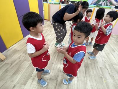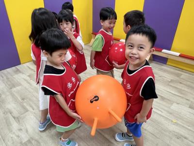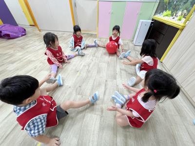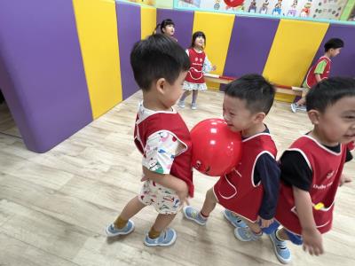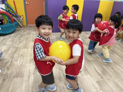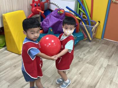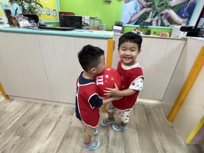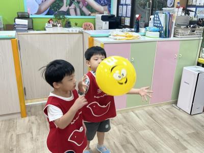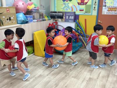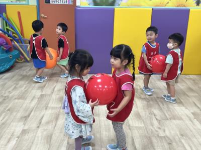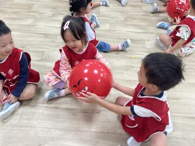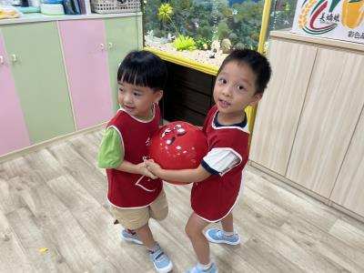 【114/10/21主題活動一我愛上學~~當我們同在一起】當我們同在一起,在一起、在一起,當我們同在一起,其快樂無比… 老師帶著孩子們手牽手圍成大圓圈一起開心唱跳表演及傳接球遊戲和找3或5位好朋友在一起玩互傳球、抱一抱球走路遊戲,考驗好朋友合作默契,請孩子們分享遊戲心情~大家說:『和好朋友一起玩球好開心真好玩!』,孩子們都流露燦爛笑容超可愛哩!
