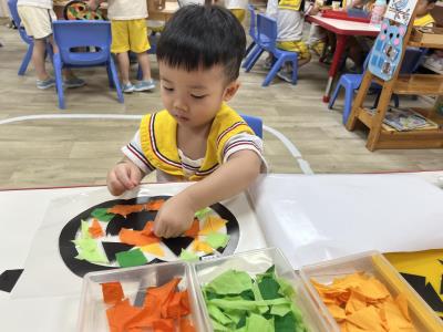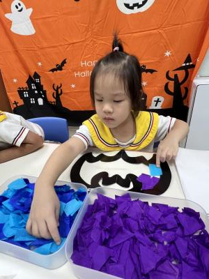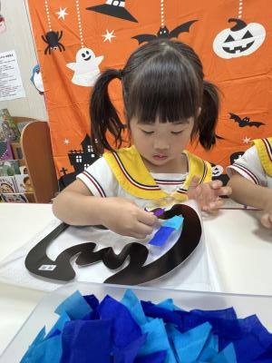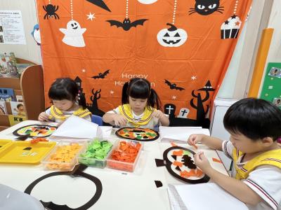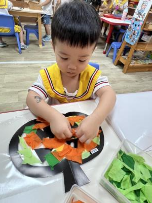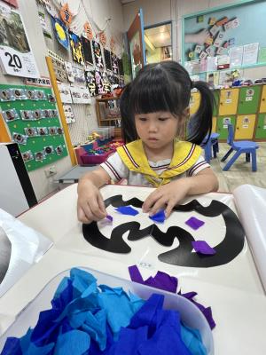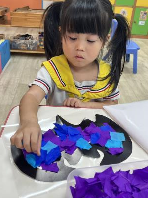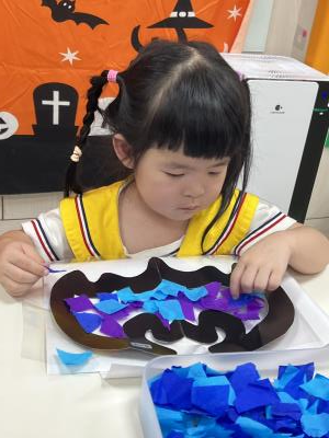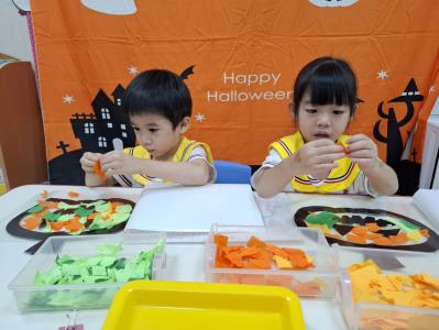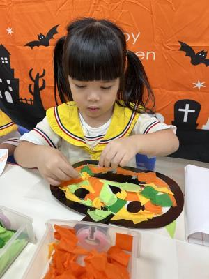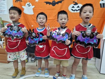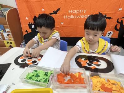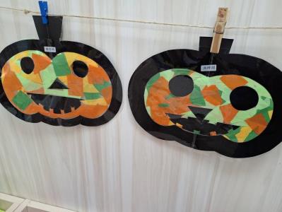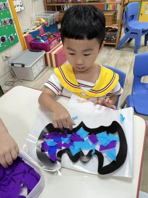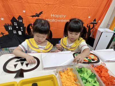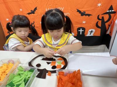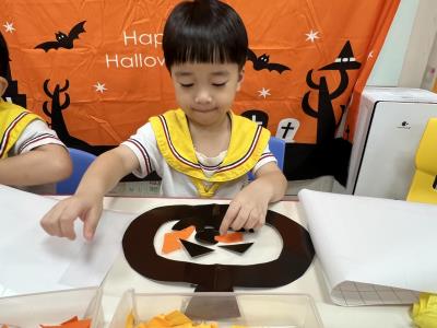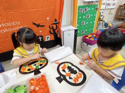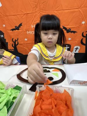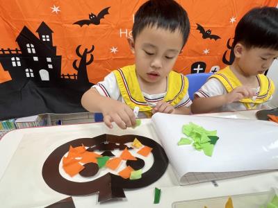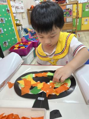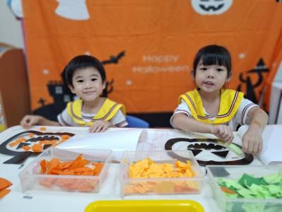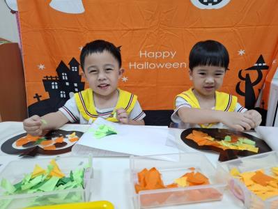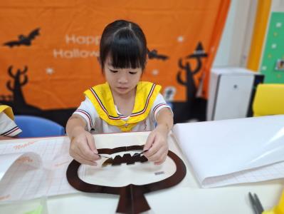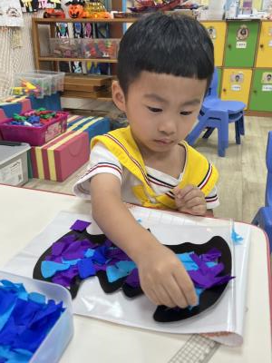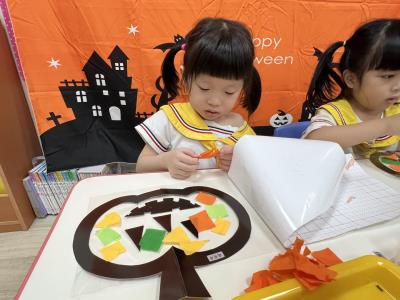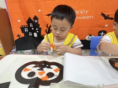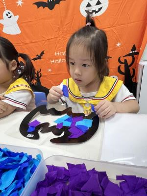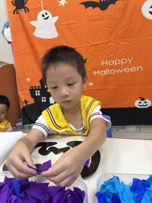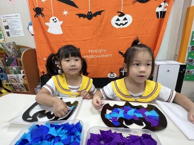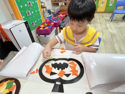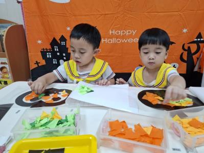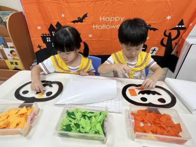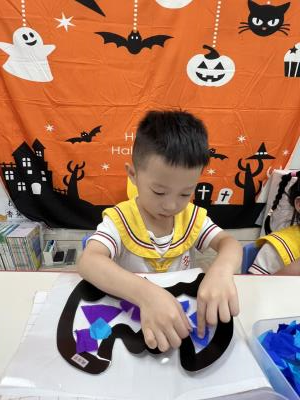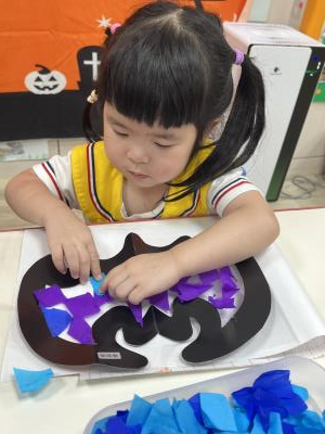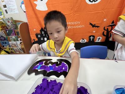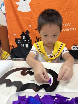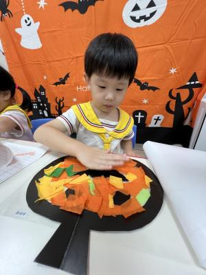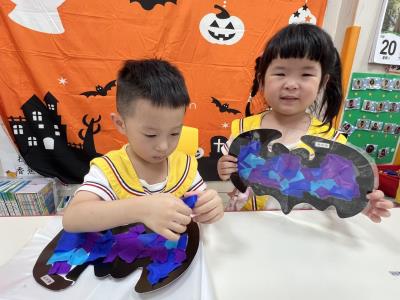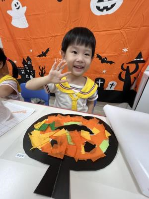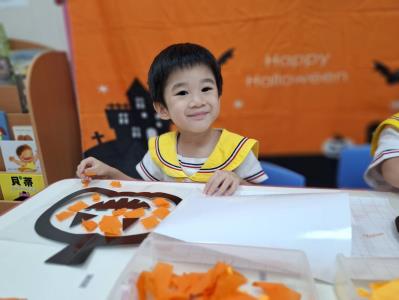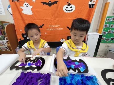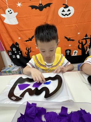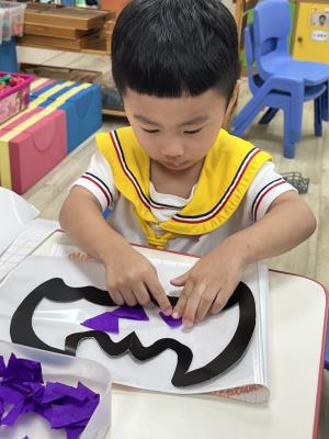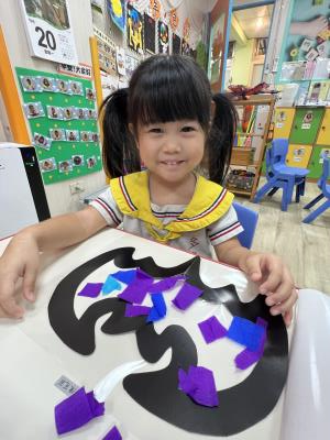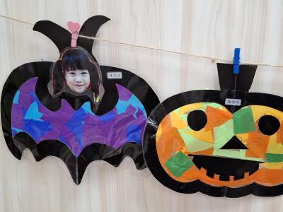 【114/10/21西洋節慶:萬聖節立體美勞:秋天南瓜&紫色黑蝙蝠】本週天氣變涼涼,孩子站在教室景觀窗外看著陰陰綿綿細雨的天氣有萬聖節氛圍,孩子們利用多元素材,貼一貼南瓜眼睛、鼻子、嘴巴和黑色的蝙蝠貼上紫色皺紋紙,創意無限,仔細看大家貼的表情都不一形狀、顏色都不同,組合起來的畫面很豐富,請給我們香蕉寶貝鼓鼓掌鼓掌聲鼓勵一番,懸掛教室情境每個作品造型都是限定版唷!