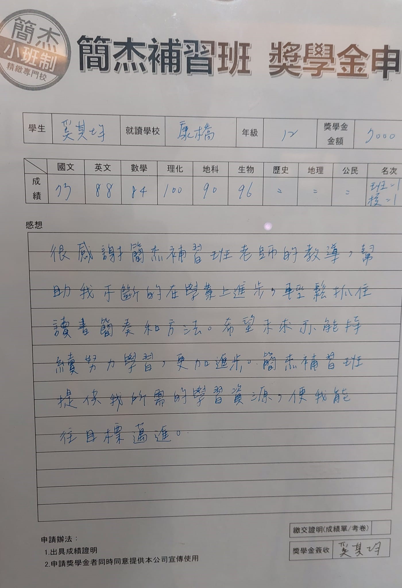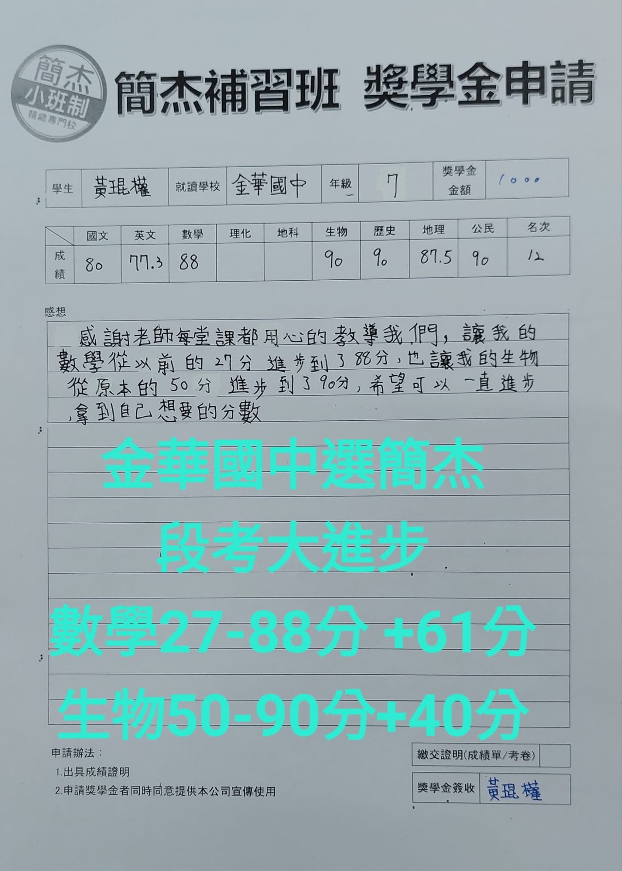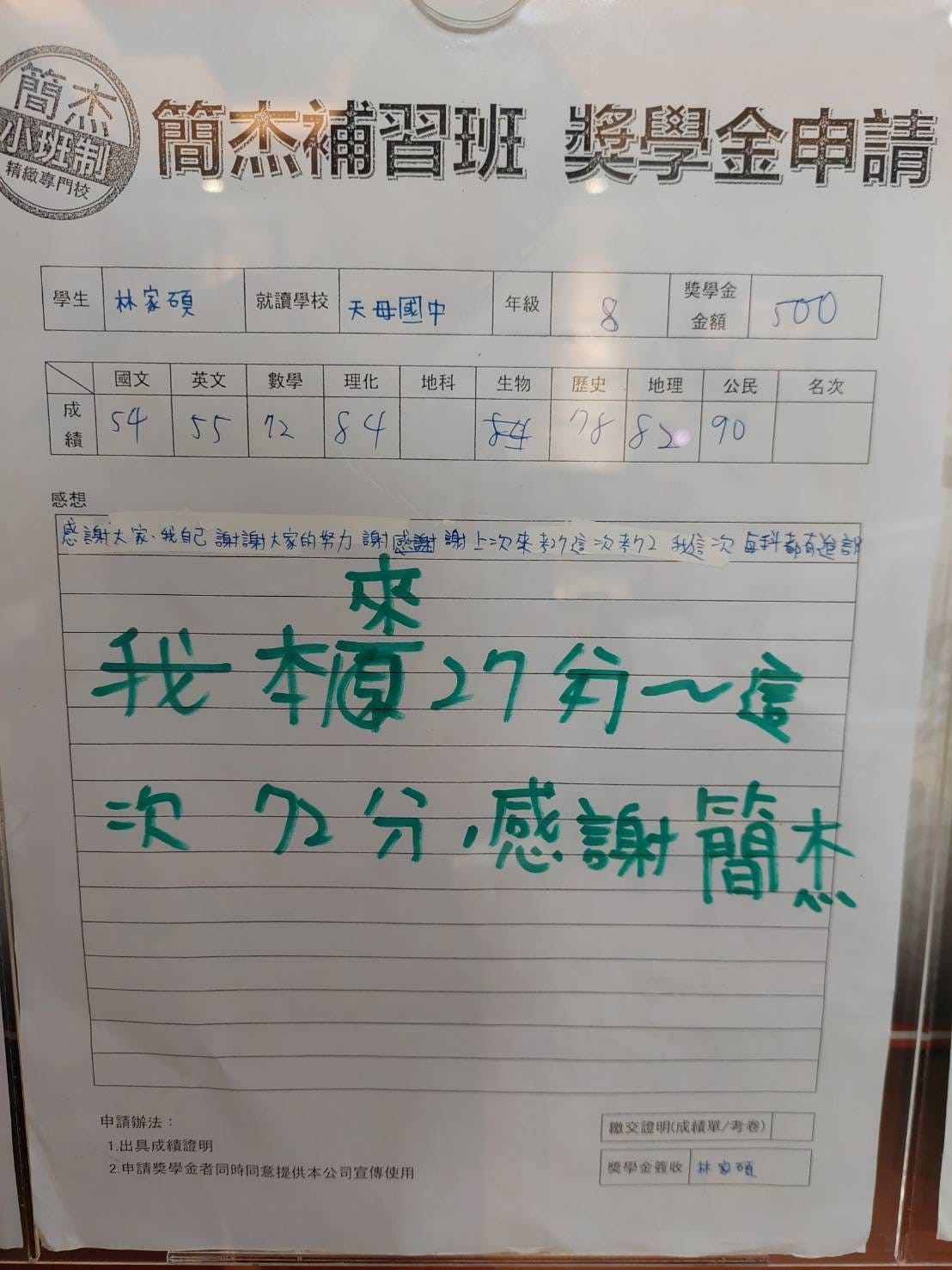 市立金華國中 國九 鄭*宏 史96分理96分公94分