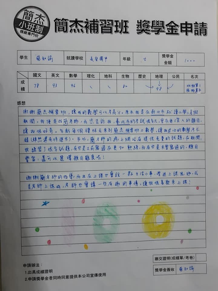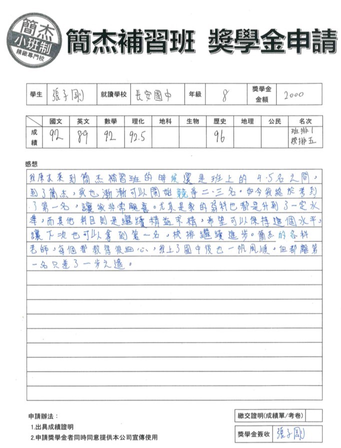 薇閣國中 九年級 柏佑 數學 56 ➤ 92 +36分(直升)