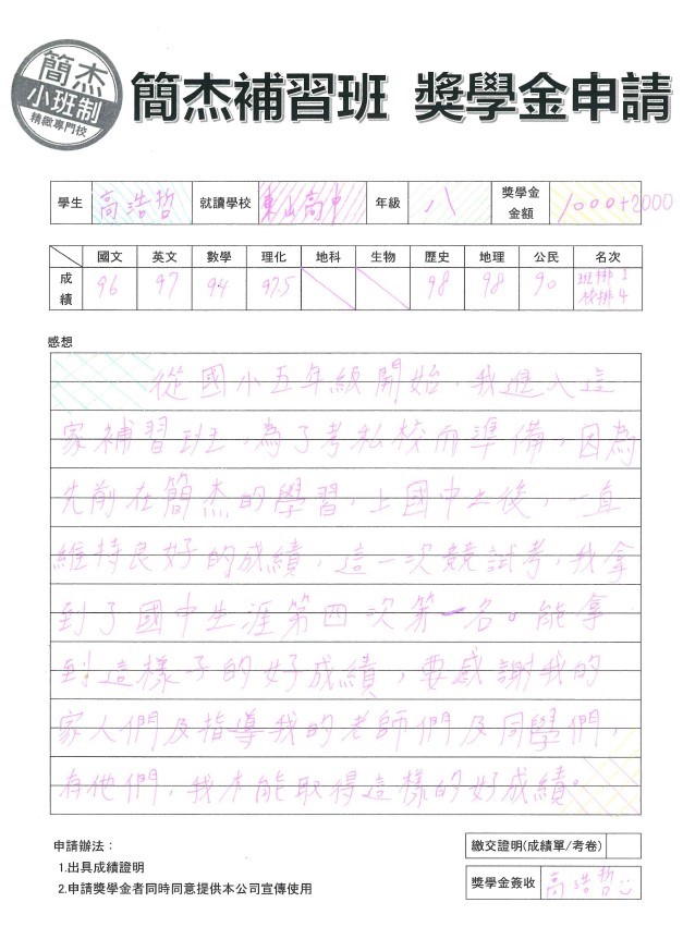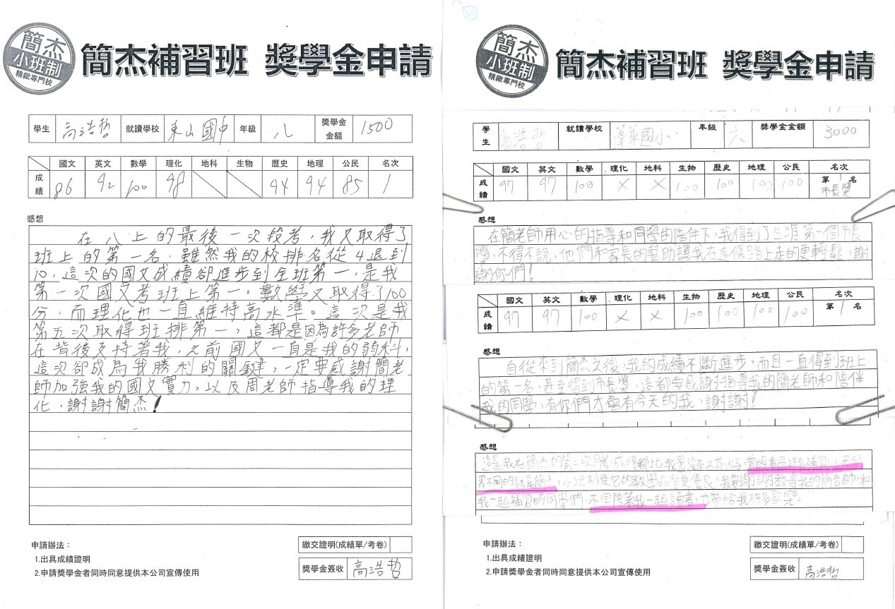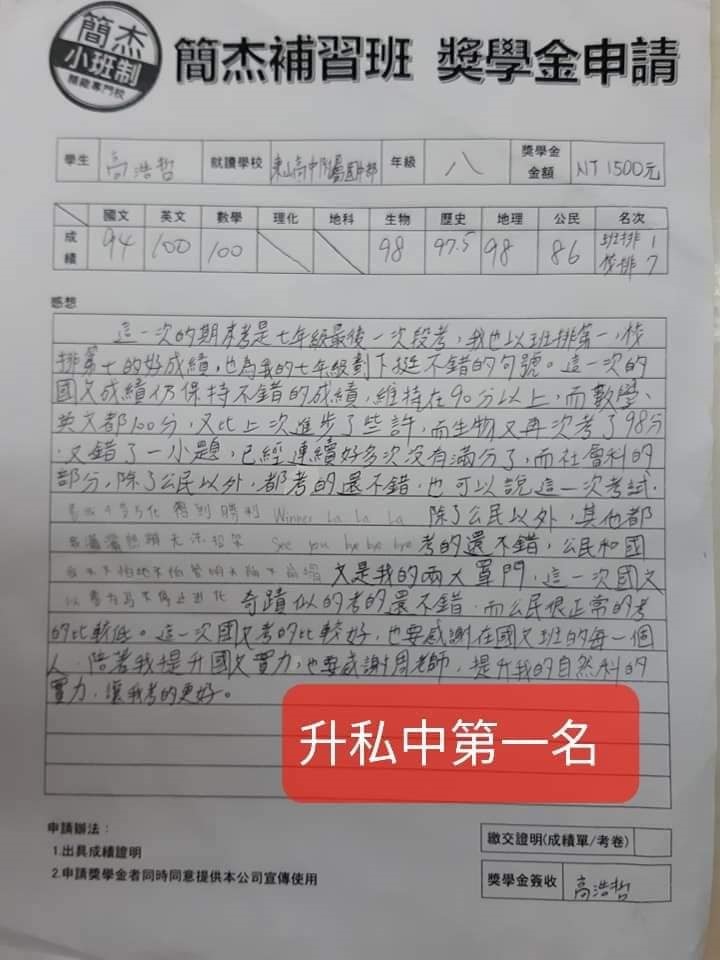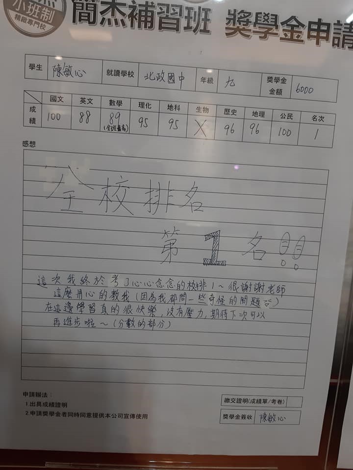 6. 私校國中外考培訓 簡杰國中補習一路補習成績優異拚大學! 例如:東山國中 楊*樂考取成功高中//衛理女中 簡*綺考取中山女高....薇閣國中段考成績優異